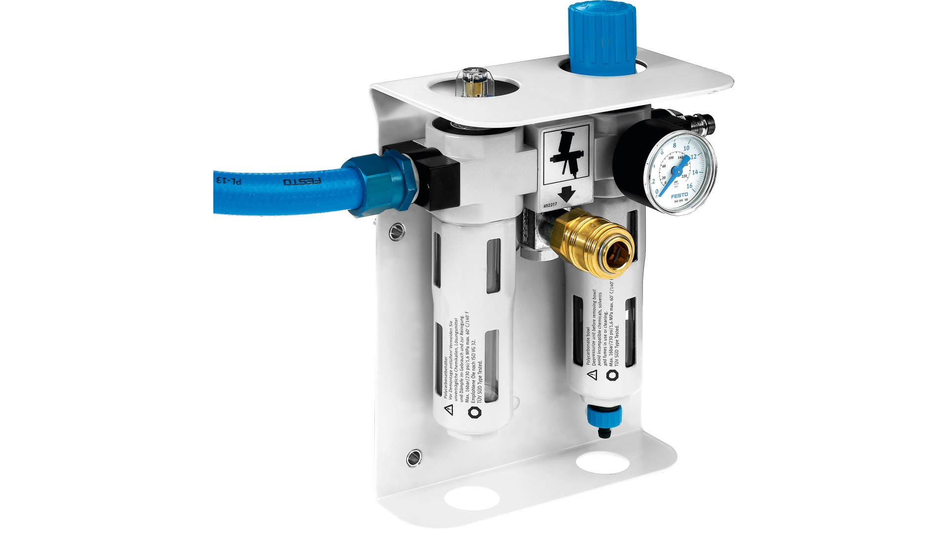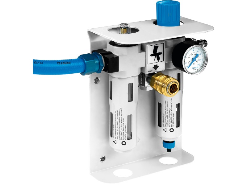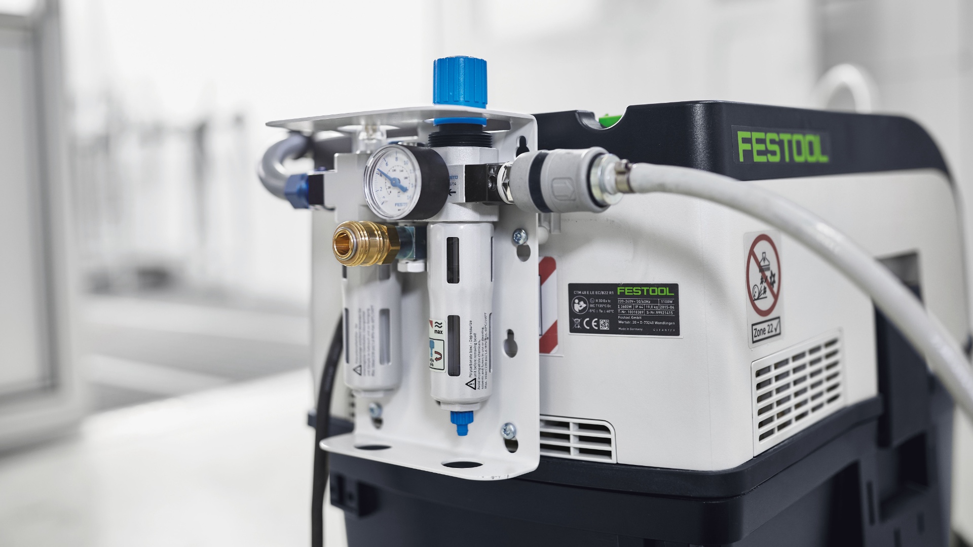 Для работы пневматических шлифмашин, например LEX 3 150, необходим определённый рабочий давление и заданная подача масла в воздух. Блок подготовки воздуха VE-CT идеально подходит, чтобы объединить всё это в одной мобильной системе. Он обеспечивает смешивание сжатого воздуха с небольшим количеством масла. Благодаря этому такие элементы, как лопатки в пневмошлифмашине, постоянно смазываются, что повышает срок службы подключённых пневмоинструментов.