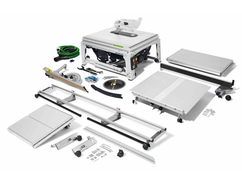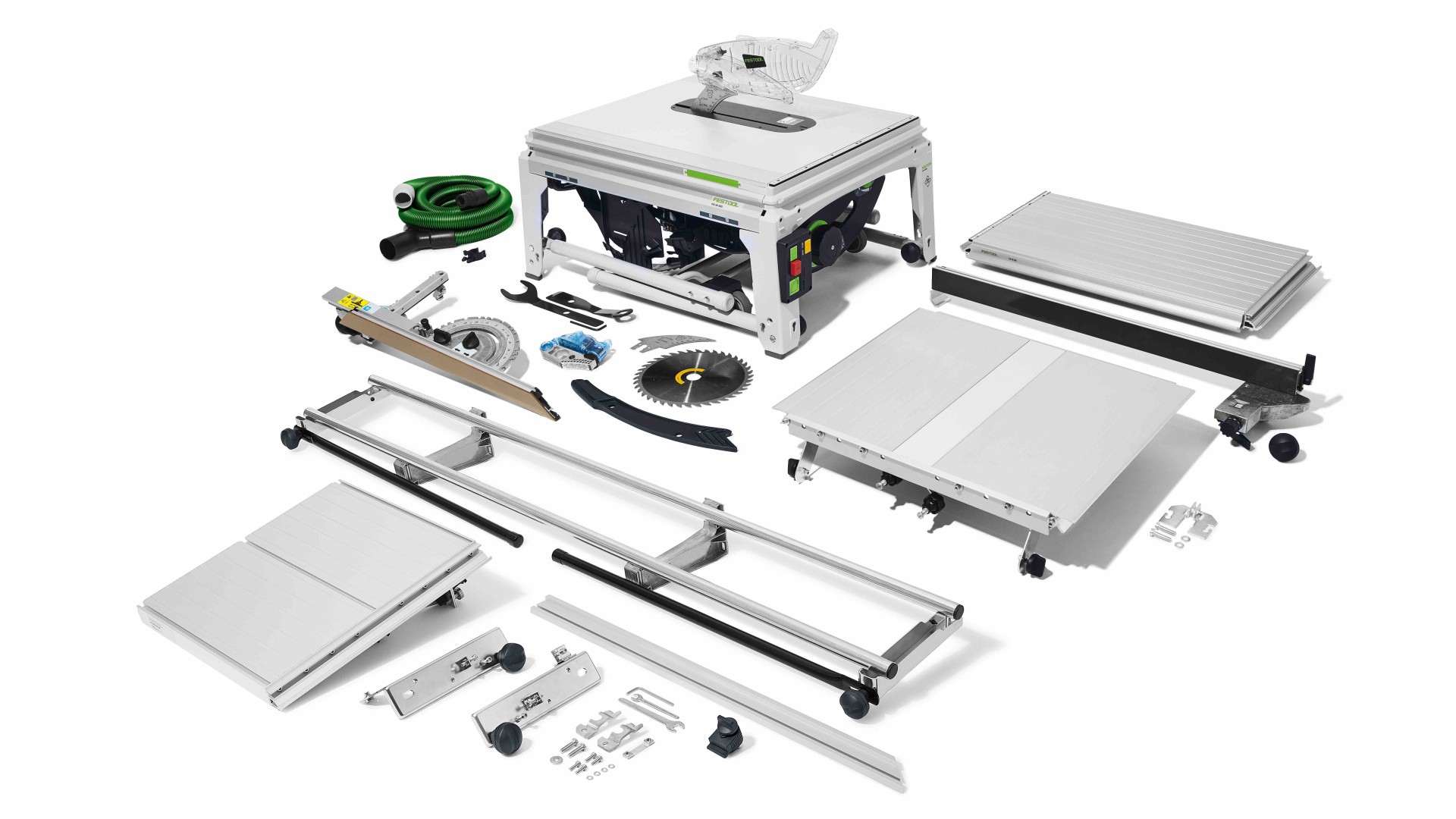 Первая пила Festool с инновационной технологией SawStop для повышения безопасности при пилении. При контакте лезвия с кожей пильный диск мгновенно останавливается и исчезает под верстаком — снижается опасность тяжёлых порезов.