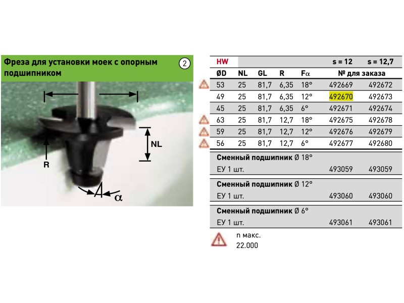 Фреза для снятия фасок с опорн. подшипником Festool HW R6.35/25/12° ss S12