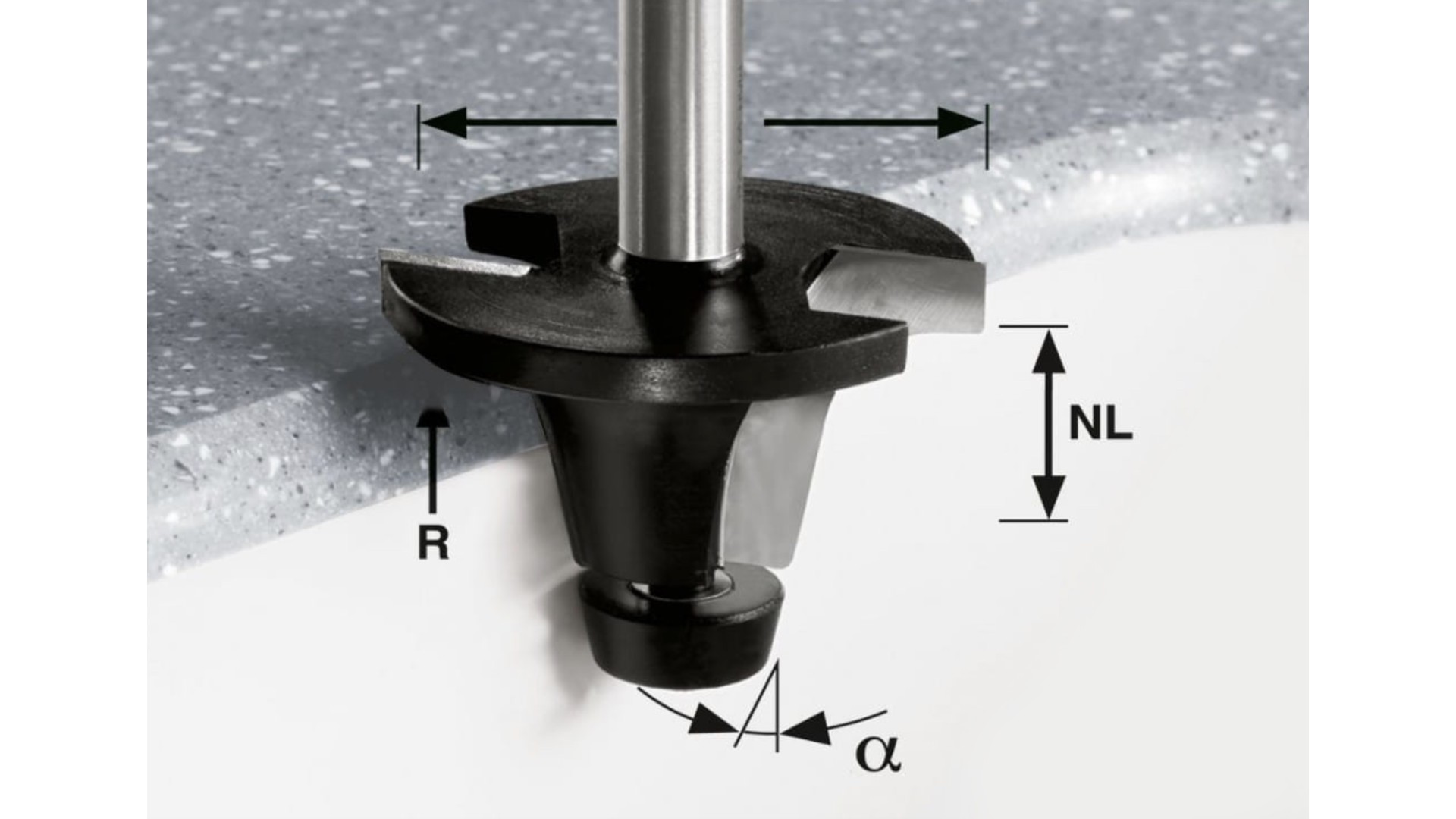 - С помощью этого инструмента можно производить скругление больших столешниц барных стоек снизу, не переворачивая заготовку