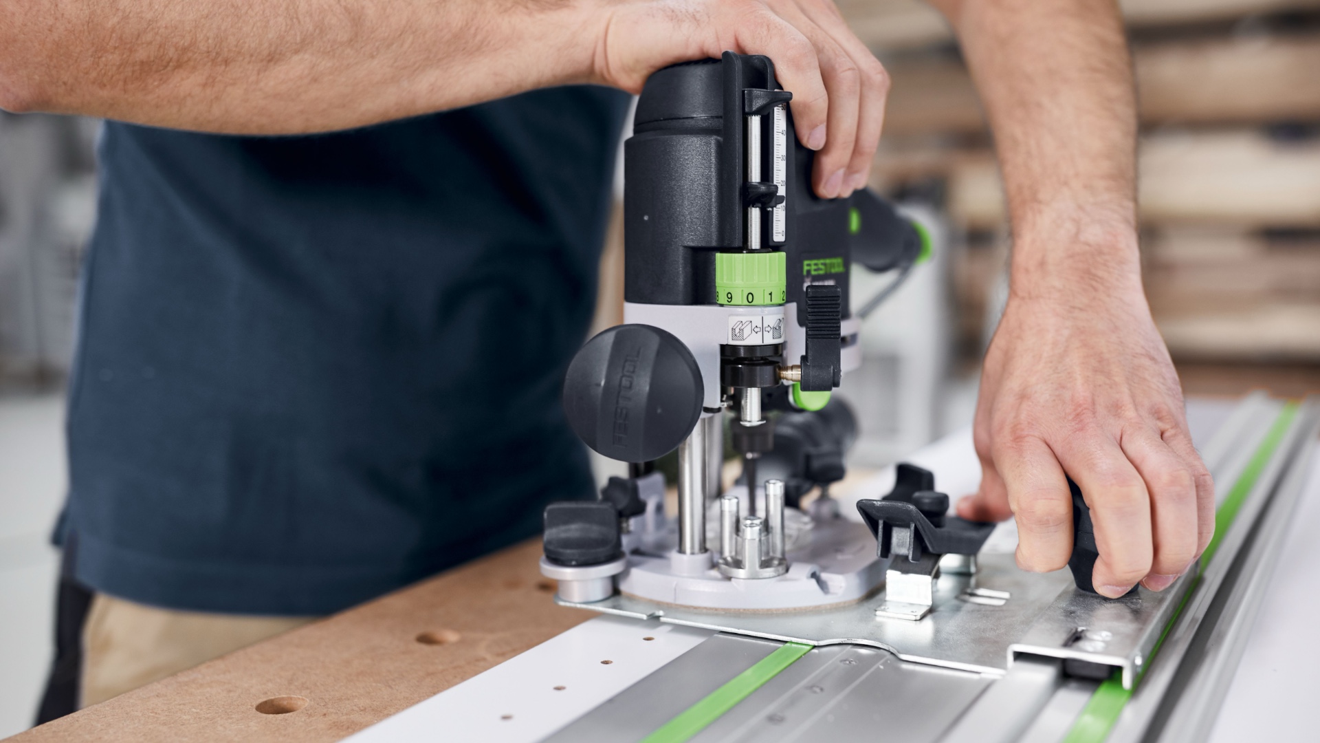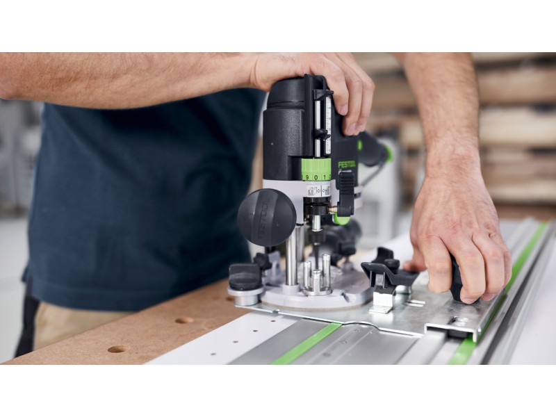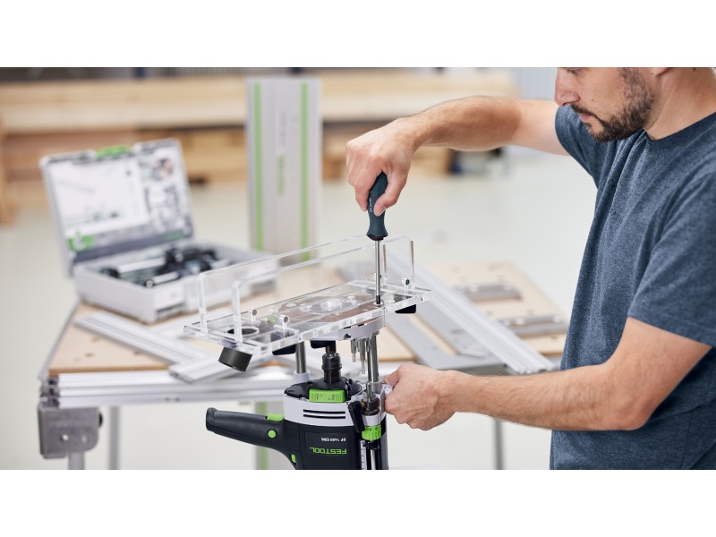 - Центрирующий штифт для идеального центрирования фрезера на направляющей плите