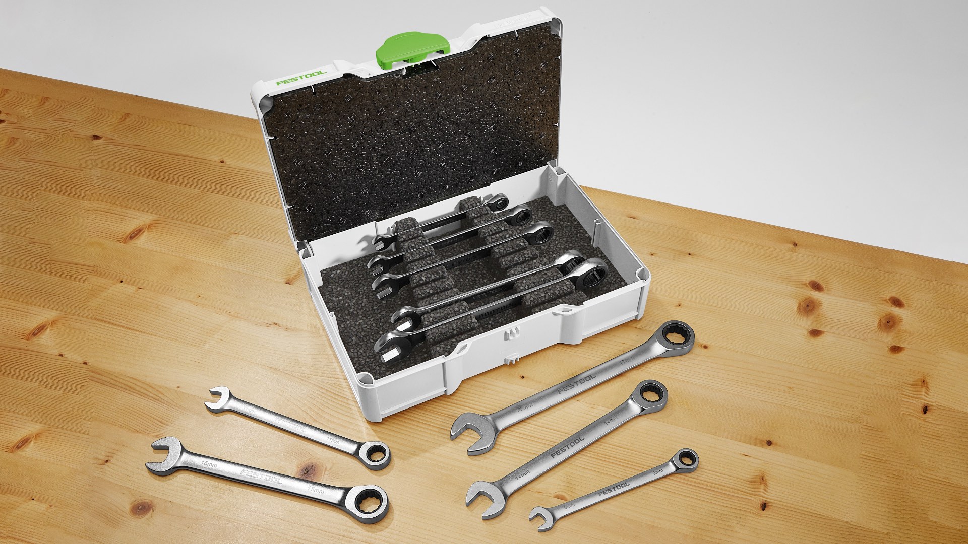 С набором кольцевых трещоточных ключей в Systainer³ S вы отлично подготовлены к самым разным задачам. Набор состоит из 10 прочных гаечных ключей с трещоточным механизмом, с размерами зева от 8 до 17 мм — всё аккуратно разложено и надёжно хранится в компактном Mini-Systainer³ S 76. И при этом остаётся мобильным: с помощью Systainer³ Rack ваш Systainer с аксессуарами можно интегрировать в автомобильную систему bott vario3.