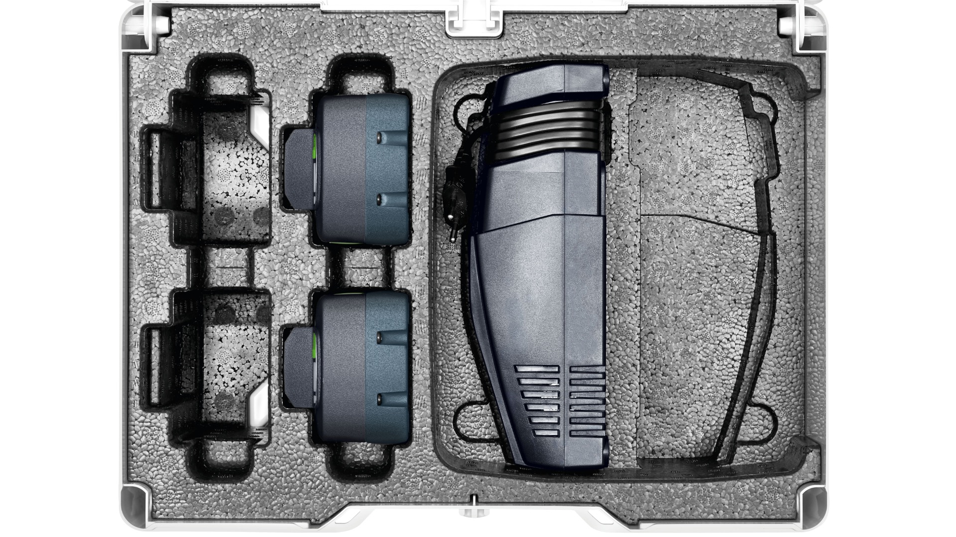 Набор Festool Energie-Set – идеальное дополнение к версиям Festool Basic или источник дополнительных аккумуляторов для мастерской и стройплощадки. Благодаря чрезвычайно мощным и выносливым аккумуляторам Li-HighPower 8,0 А·ч идеально подходит для инструментов с максимальным потреблением мощности, таких как аккумуляторная углошлифмашина Festool AGC 18, аккумуляторная отрезная система DSC-AGC 18, аккумуляторная дисковая пила HKC 55 или аккумуляторные пылесосы CTC MINI/MIDI. Быстрозарядное устройство SCA 16 заряжает их в кратчайшие сроки – за счёт активного, интеллектуального воздушного охлаждения до и во время процесса зарядки SCA 16 обеспечивает сверхбыструю готовность AIRSTREAM-аккумуляторов к повторному использованию: примерно за 30 минут до состояния «ready». Разумеется, всё аккуратно уложено в Systainer³ и полностью защищено сервисом Festool.