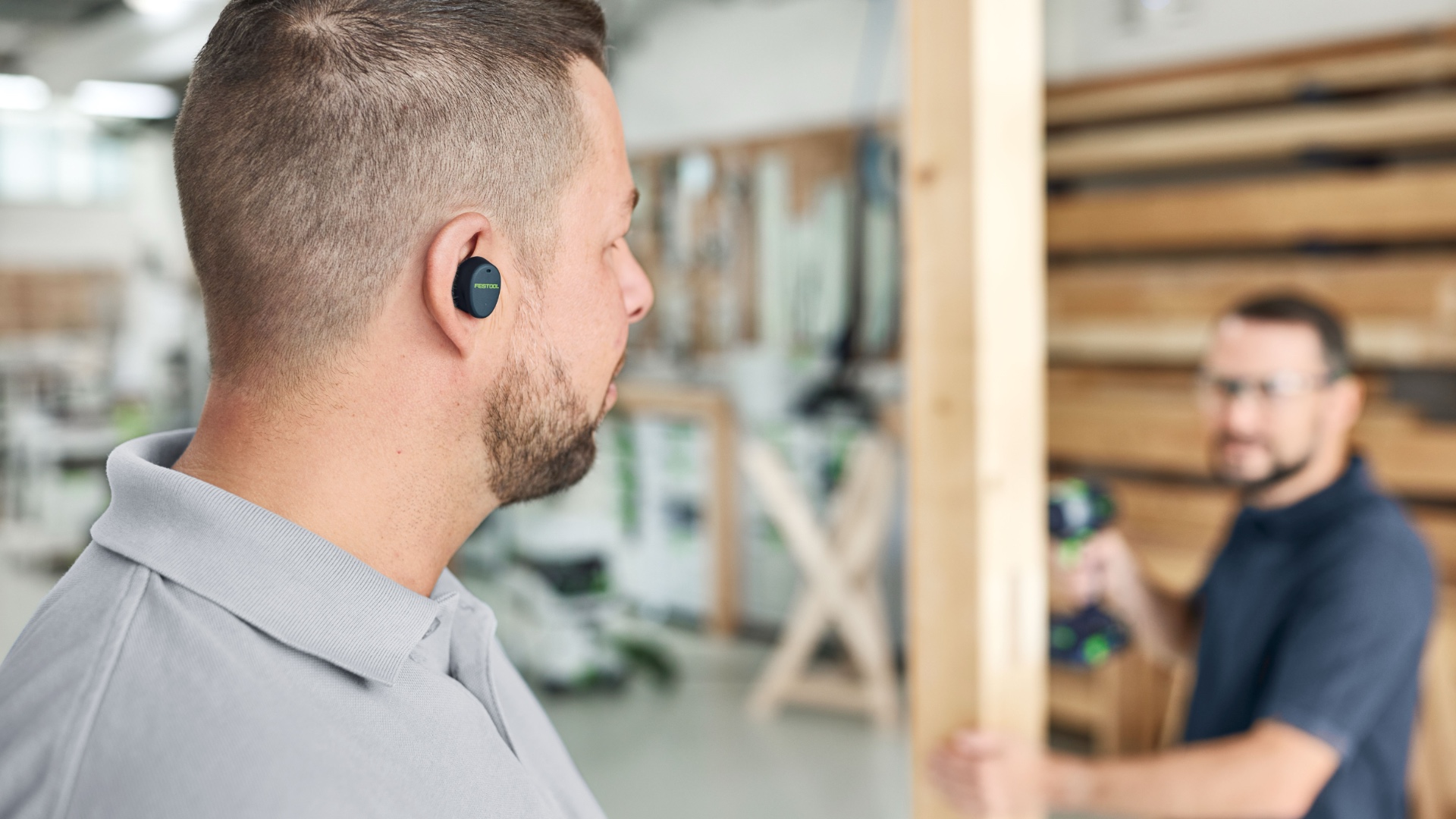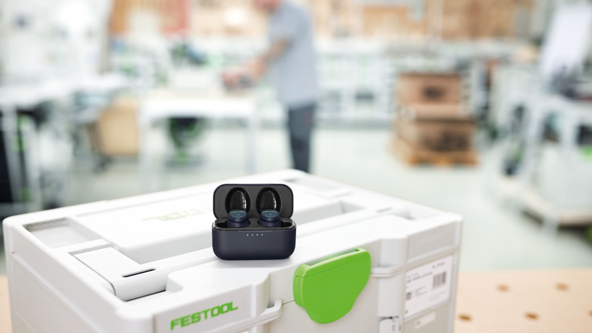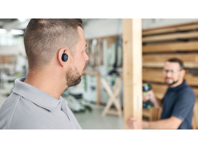 Маленькие, лёгкие и удобные – беспроводные Bluetooth® беруши станут вашим ежедневным спутником в мастерской или на стройке. Во время работы они защищают от шума, позволяют по Bluetooth® звонить по телефону или слушать любимую музыку в превосходном качестве звука. При этом вы не лишаетесь защиты профессионального уровня: громкие звуки вокруг, превышающие безопасный уровень 79 дБ (соответствует европейскому стандарту EN352), блокируются. А хотите при этом всё равно слышать, что происходит вокруг? За это отвечает режим разговора. Инновационная технология пропускает речь и окружающие звуки на безопасном уровне громкости – вы можете в любой момент общаться с коллегами, не снимая защиту слуха. После работы беруши просто кладутся в прилагаемый зарядный кейс для подзарядки.