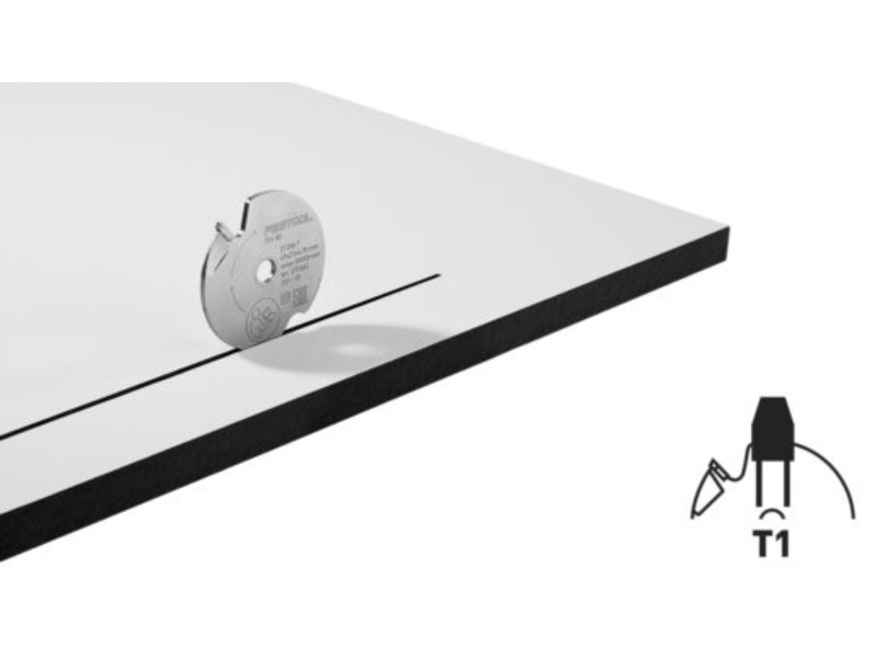 Алмазный подрезной диск надрезает самый верхний слой материала, предотвращая сколы с обеих сторон заготовки. Даже при работе с такими «капризными» материалами, как компакт-ламинат и меламиновые покрытия. Благодаря алмазным вставкам пильное полотно имеет очень большой ресурс.