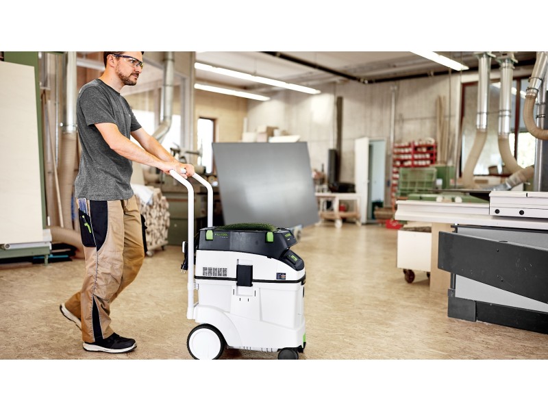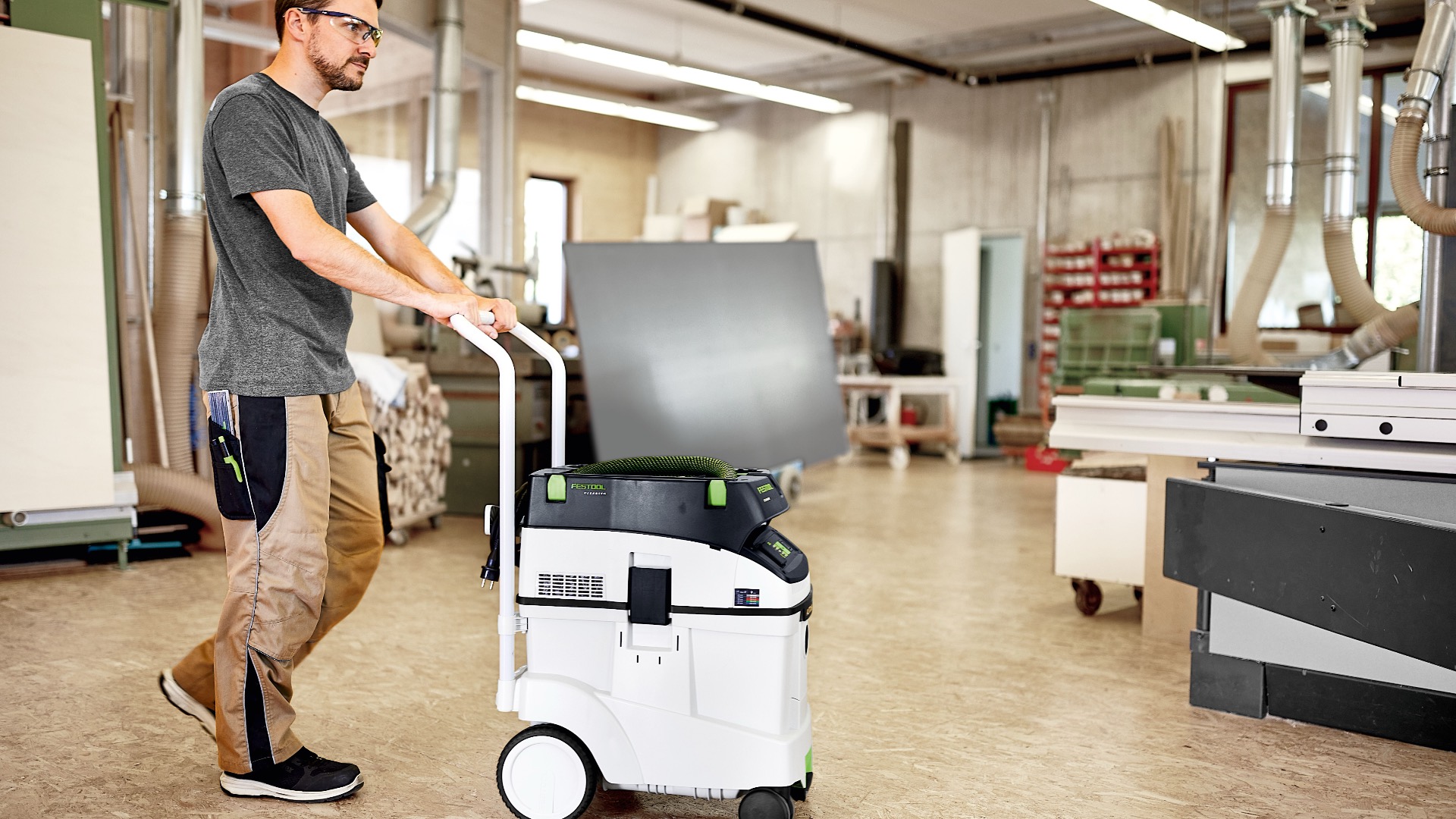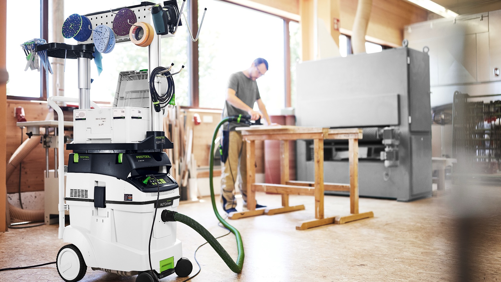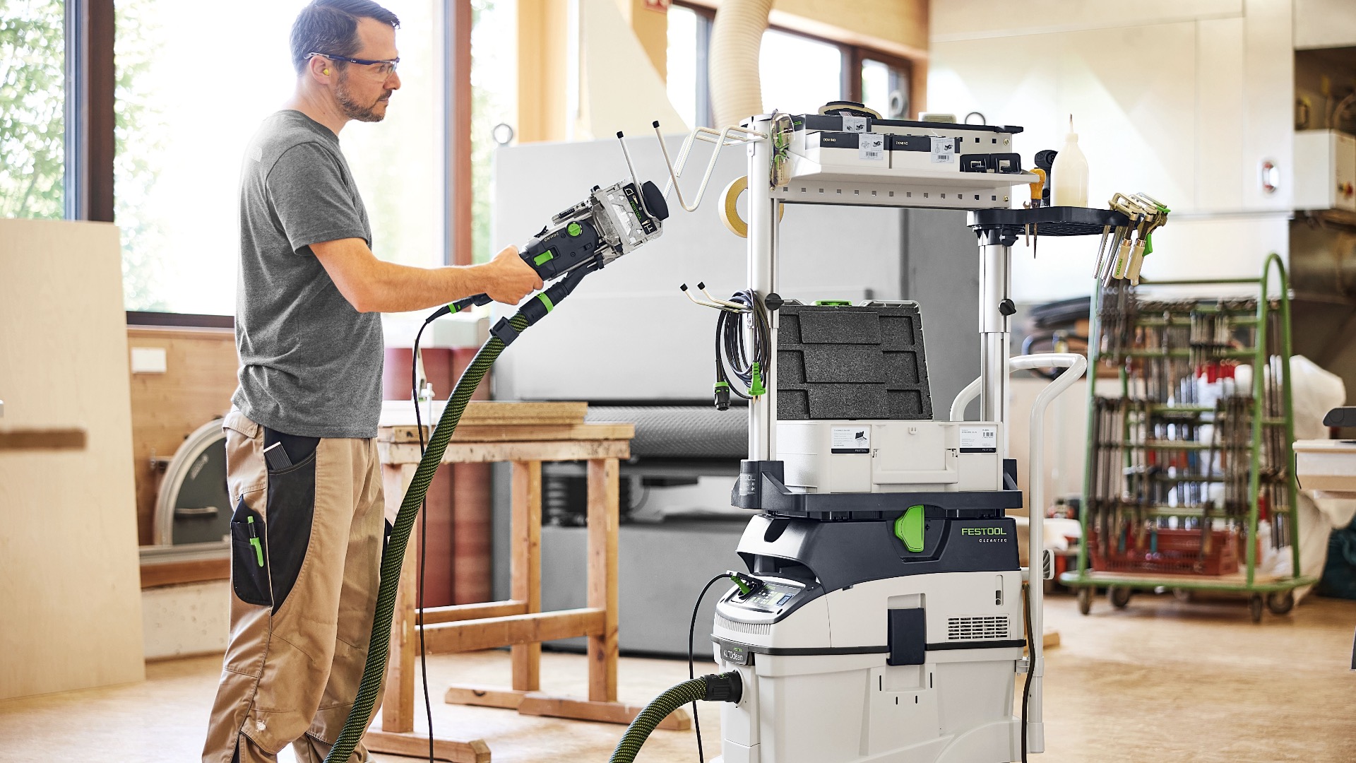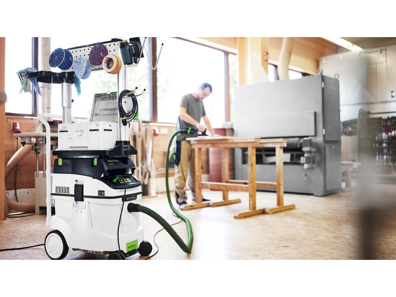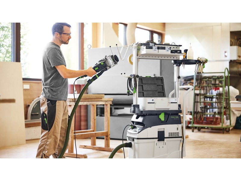CLEANTEC CTM 48 EI AC превосходит предшественника более эффективной автоматической очисткой основного фильтра AUTOCLEAN. Это обеспечивает стабильно высокую силу всасывания, более длительные рабочие интервалы и увеличенный срок службы фильтра при меньших затратах на обслуживание. Сенсорное управление даёт интуитивный контроль пылесоса. Встроенный интерфейс Bluetooth® позволяет автоматически запускать пылесос от аккумуляторного инструмента Festool или опционального пульта ДУ. Через приложение Festool App можно, например, задавать интервалы очистки. Гладкий антистатический шланг удобно убирается в интегрированный отсек для шланга.