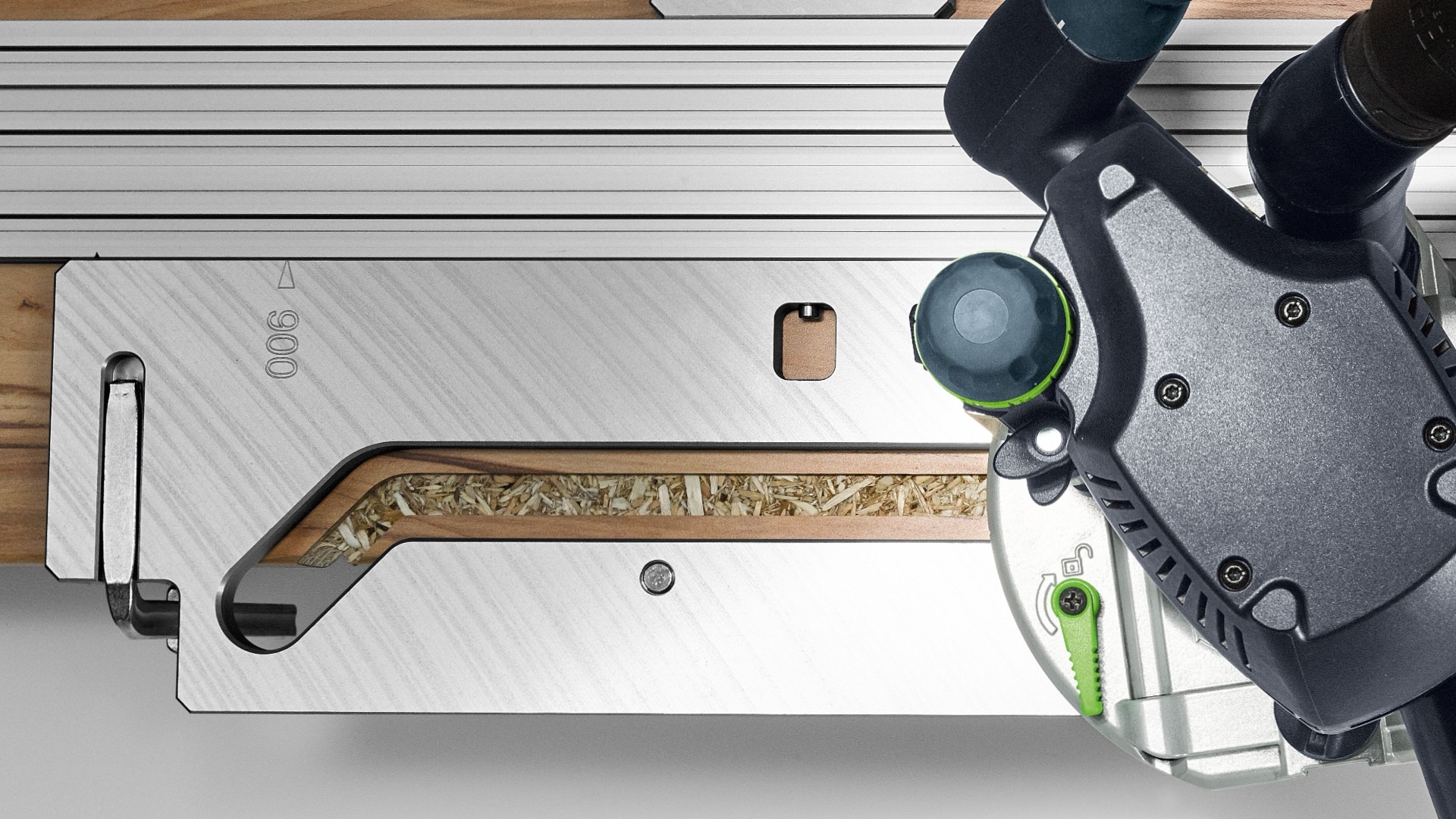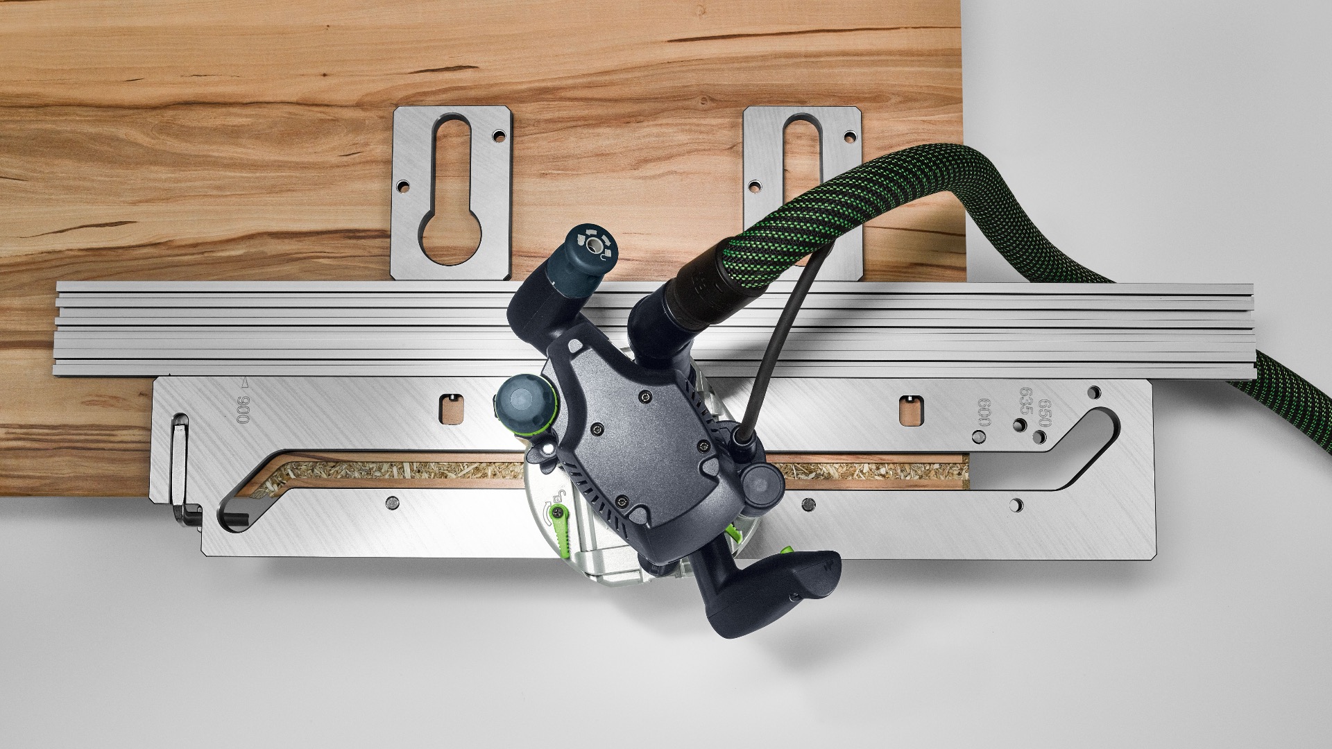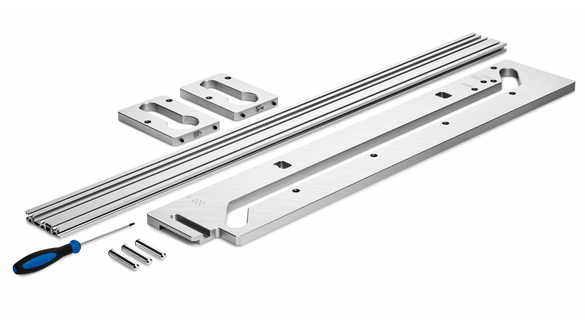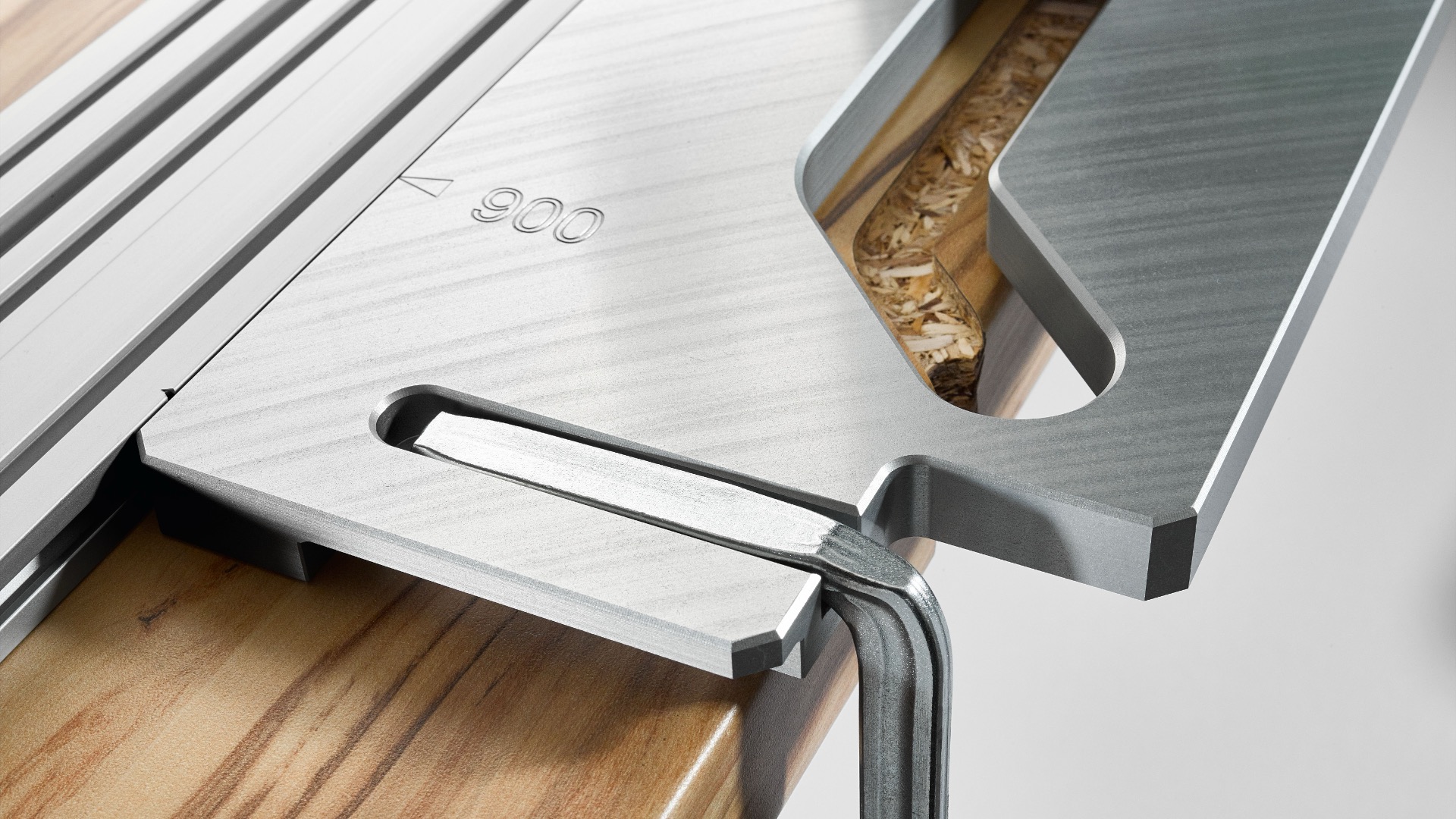 - Дополнительно: две свободно позиционируемые фрезерные шаблонные вставки для врезки стандартной соединительной фурнитуры с нижней стороны плиты