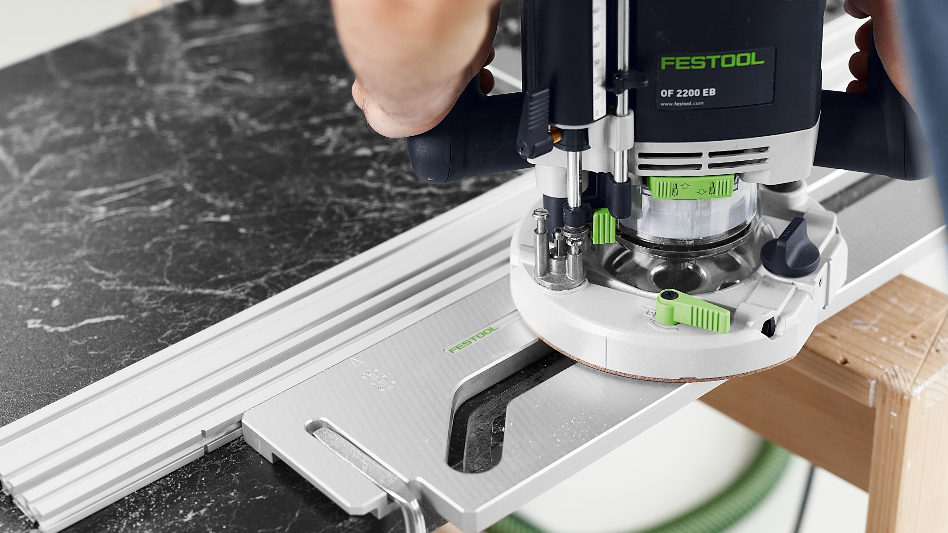 - Для пазовой фрезы Ø 14 мм и копировального кольца Ø 30 мм; рекомендуется для фрезеров OF 2200 и OF 1400