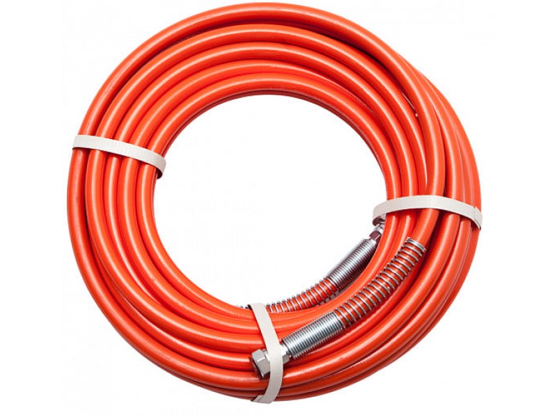 Окрасочный шланг высокого давления 15 м - предназначен для окрасочного оборудования безвоздушного распыления. Шланги представляют собой многожильные полиамидные шланги с двойным слоем фиброволокна и наружнм полиуретановым покрытием, защитная пружина с обоих концов.