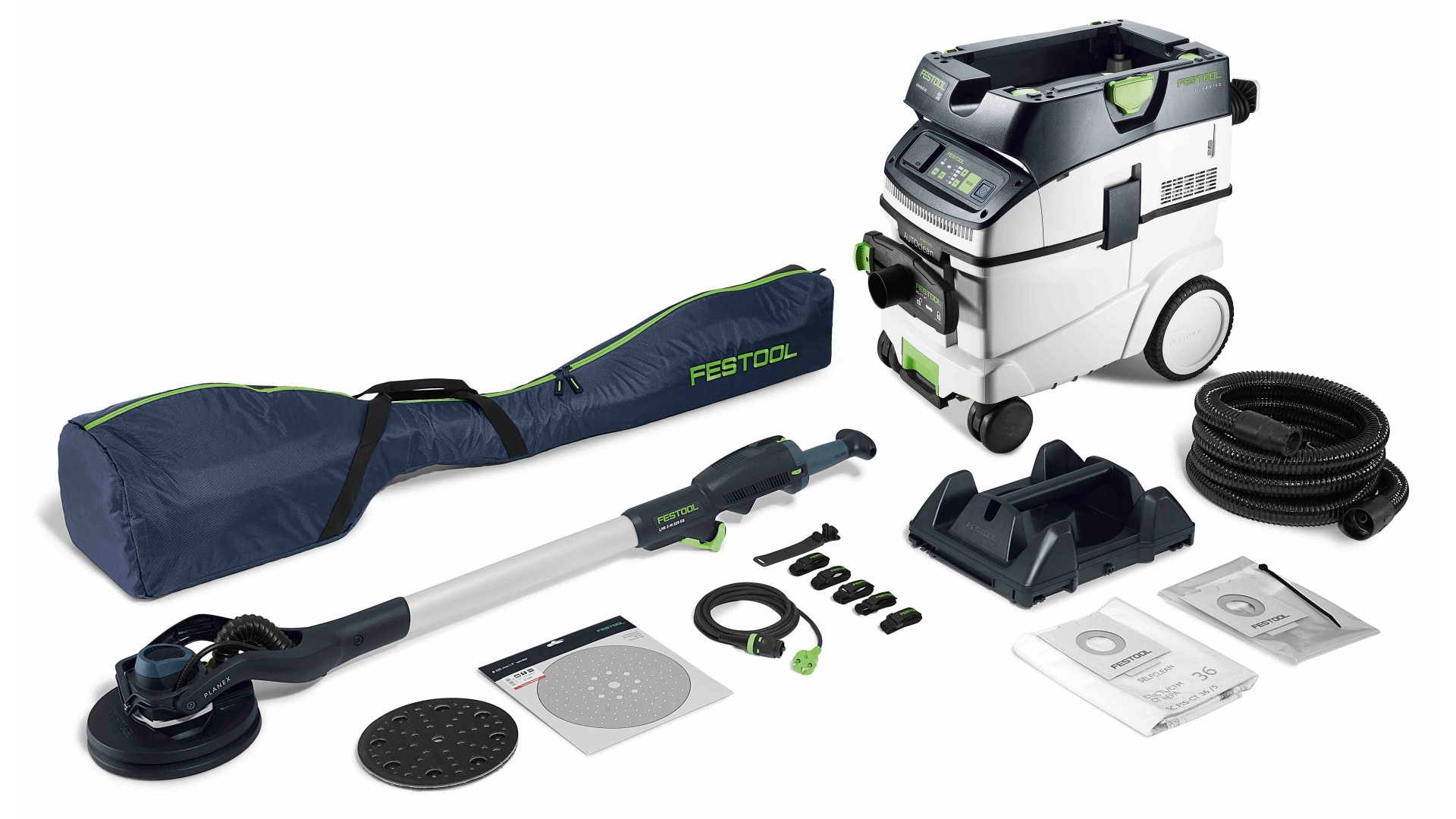 PLANEX M в комплекте с пылеудаляющим аппаратом CTM 36 - настоящий универсал среди наших шлифмашинок для стен и потолков. Просто достаём её из чехла, подключаем к электросети и приступаем к работе. Эксцентриковое движение шлифтарелки обеспечивает высокое качество обрабатываемой поверхности. Для облегчения работы можно отрегулировать прижим шлифтарелки к стене или потолку для снятия нагрузки с рук и спины. Инструмент имеет рабочую длину 1,4 м, которой хватает для всех типовых помещений. С помощью практичной T-образной рукоятки можно дополнительно увеличить зону действия шлифмашинки.