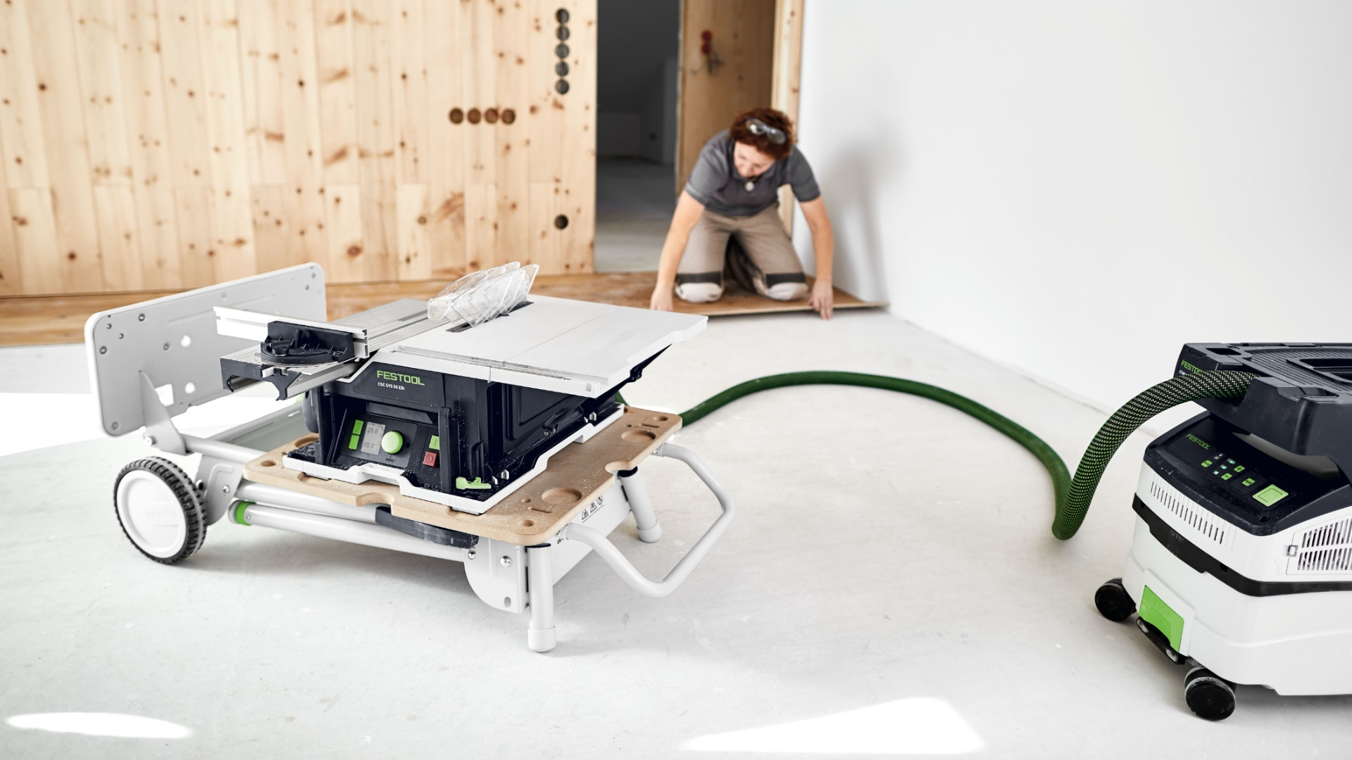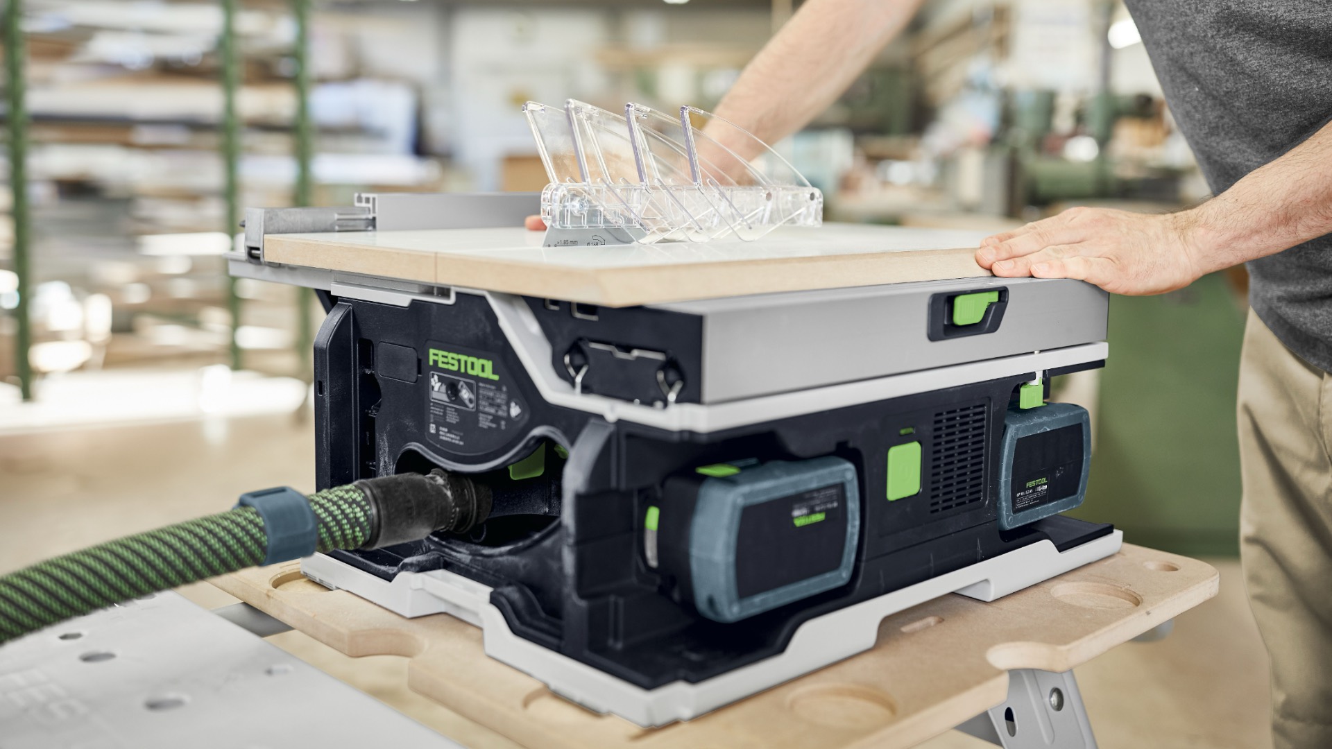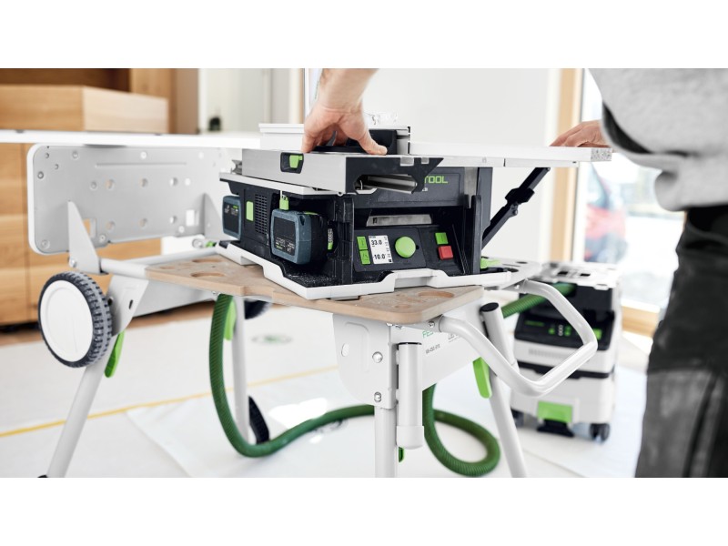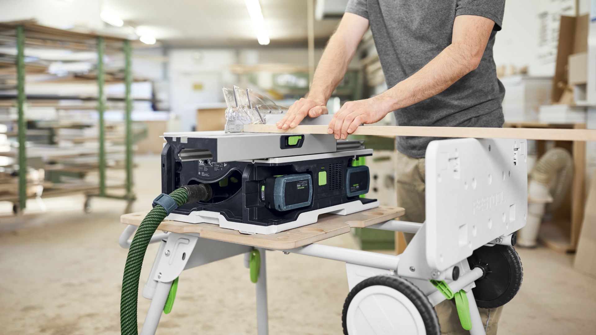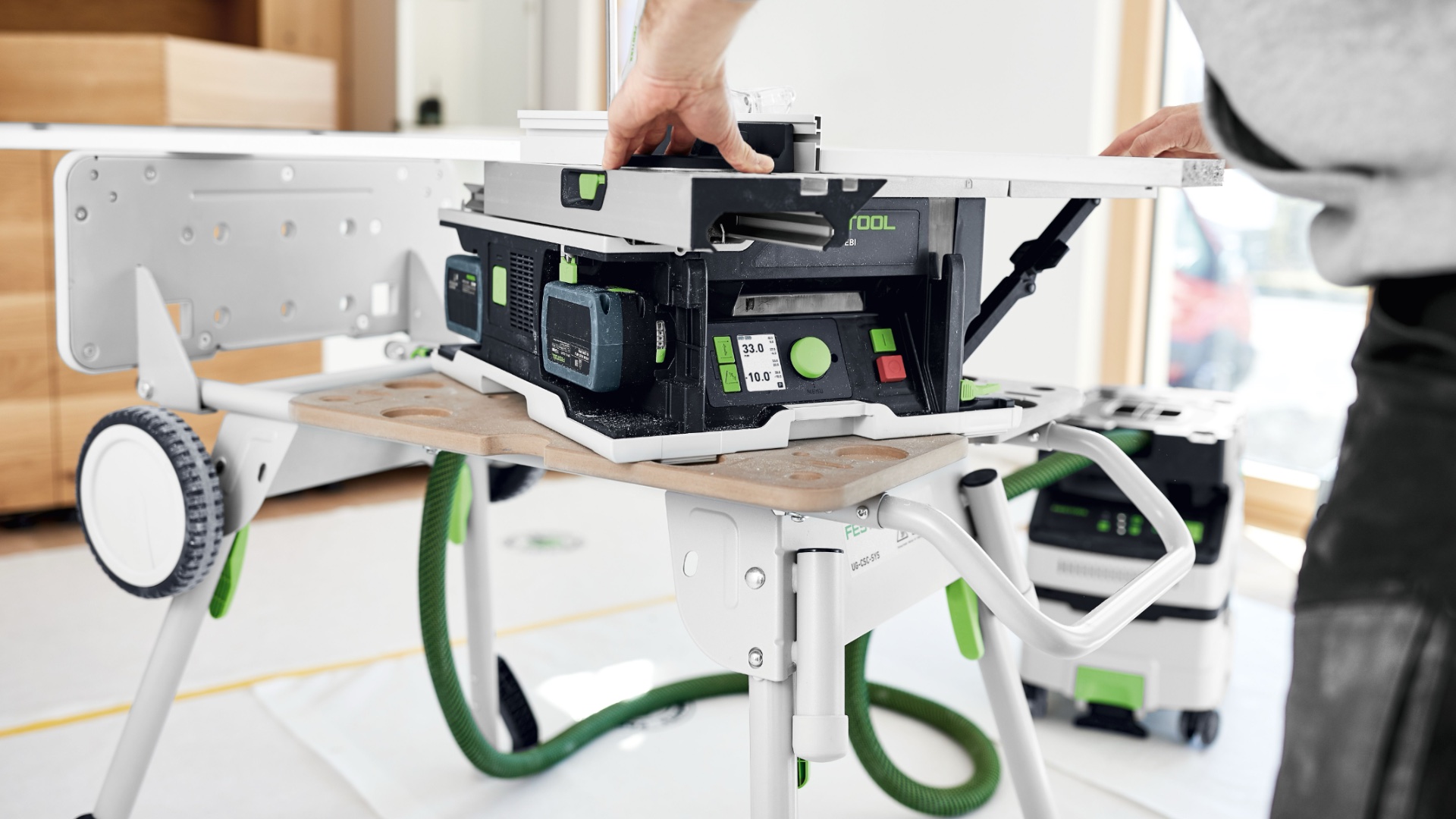 Просто транспортировать. Комфортно работать. Идеально в сочетании с аккумуляторной настольной циркулярной пилой CSC SYS 50.