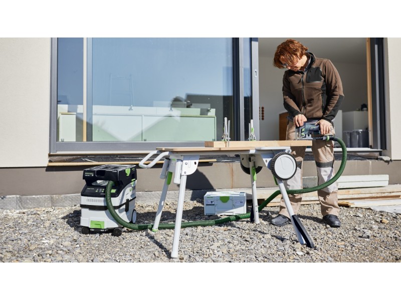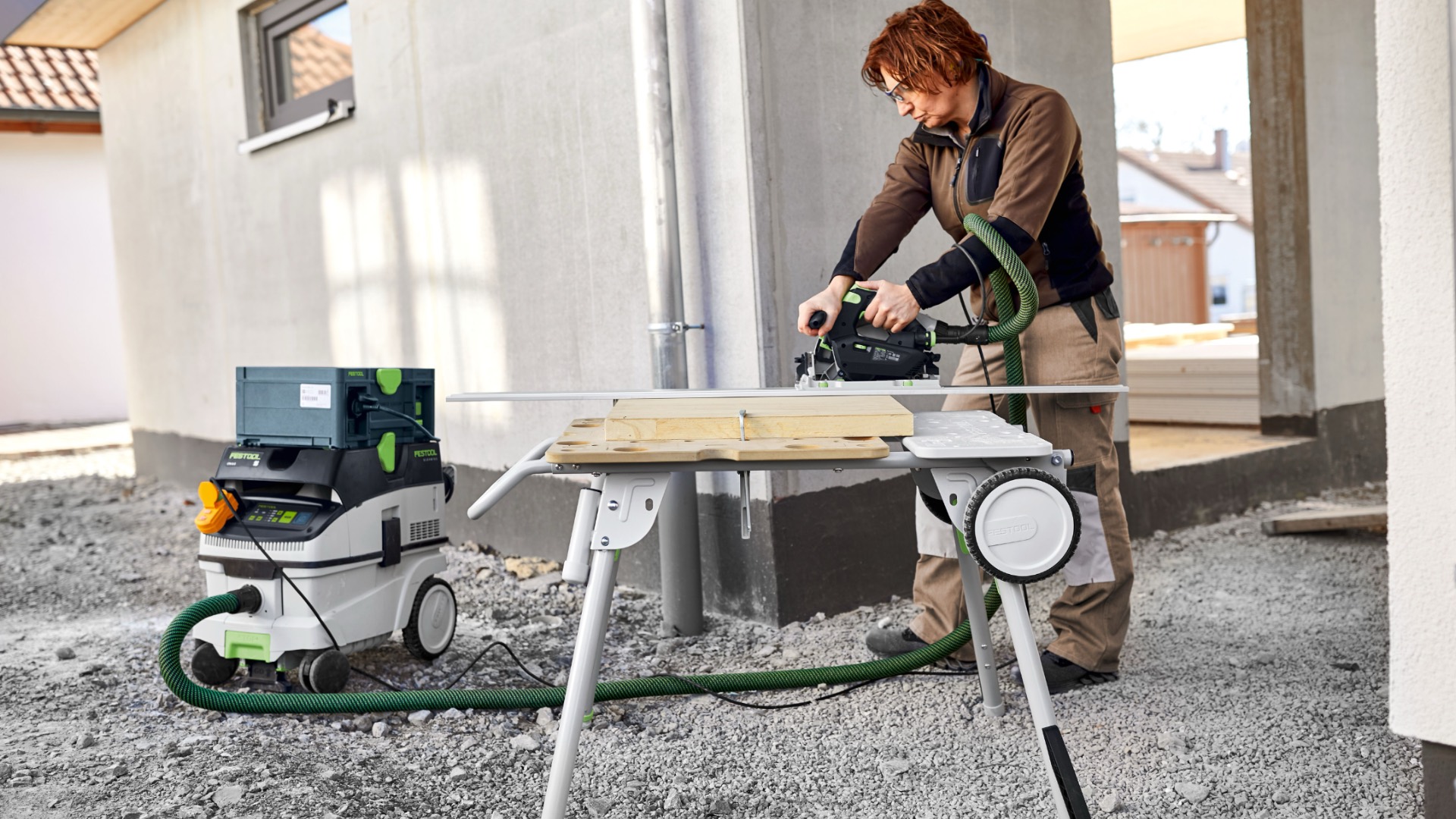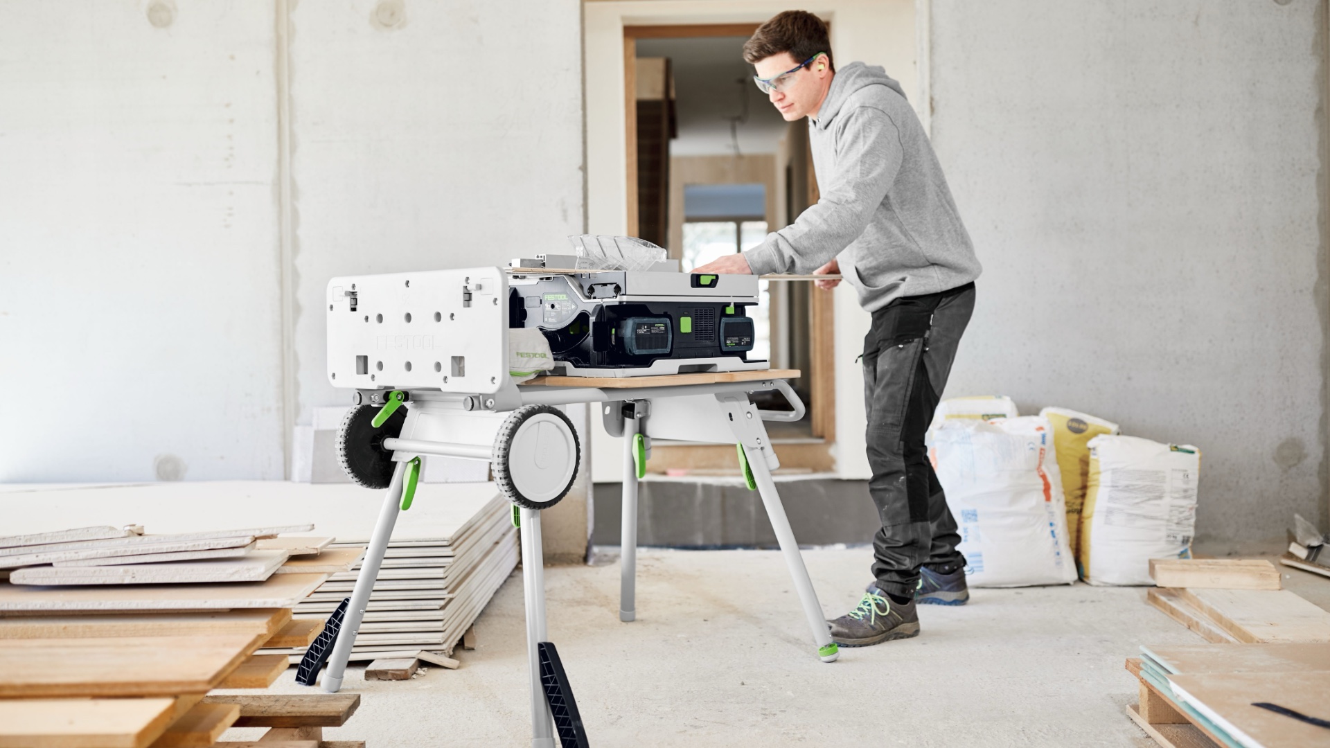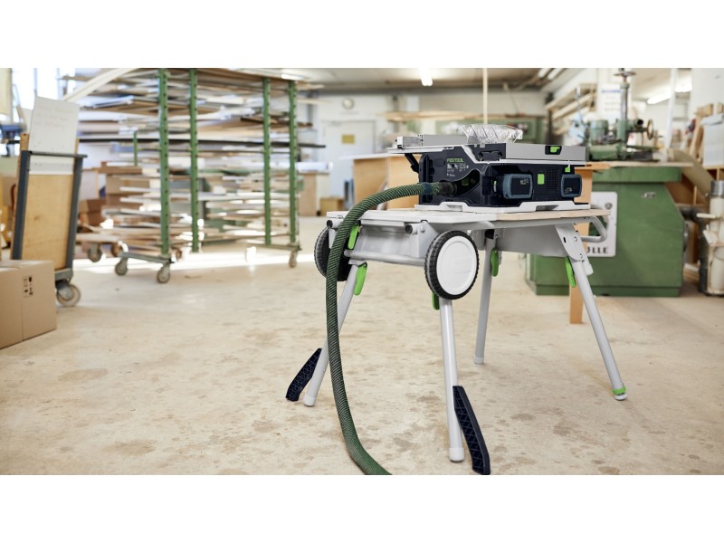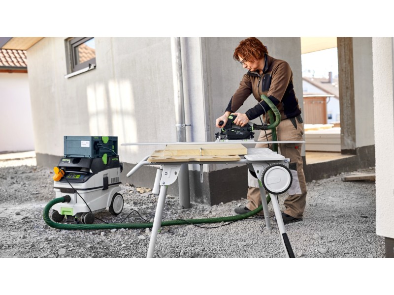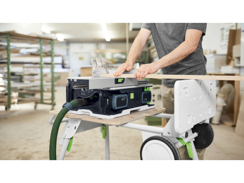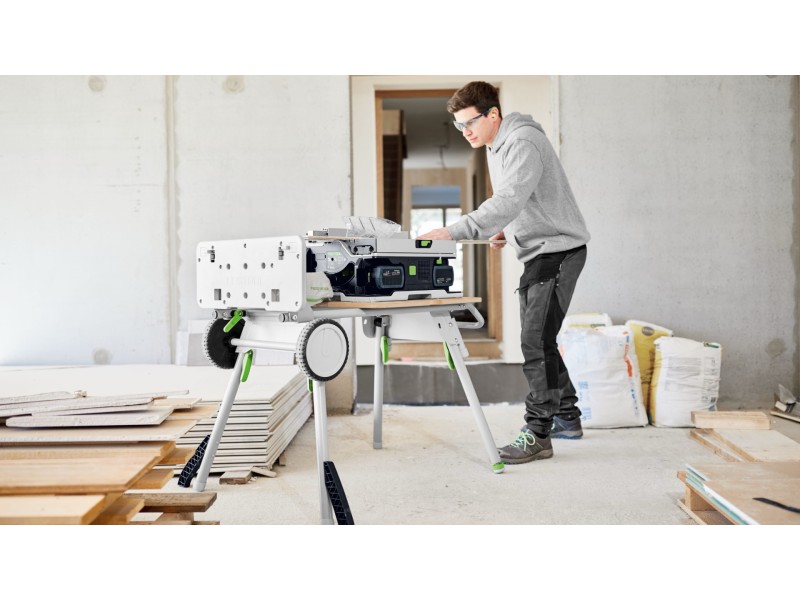 Просто транспортировать. Комфортно работать. Идеально в сочетании с аккумуляторной настольной циркулярной пилой CSC SYS 50.
