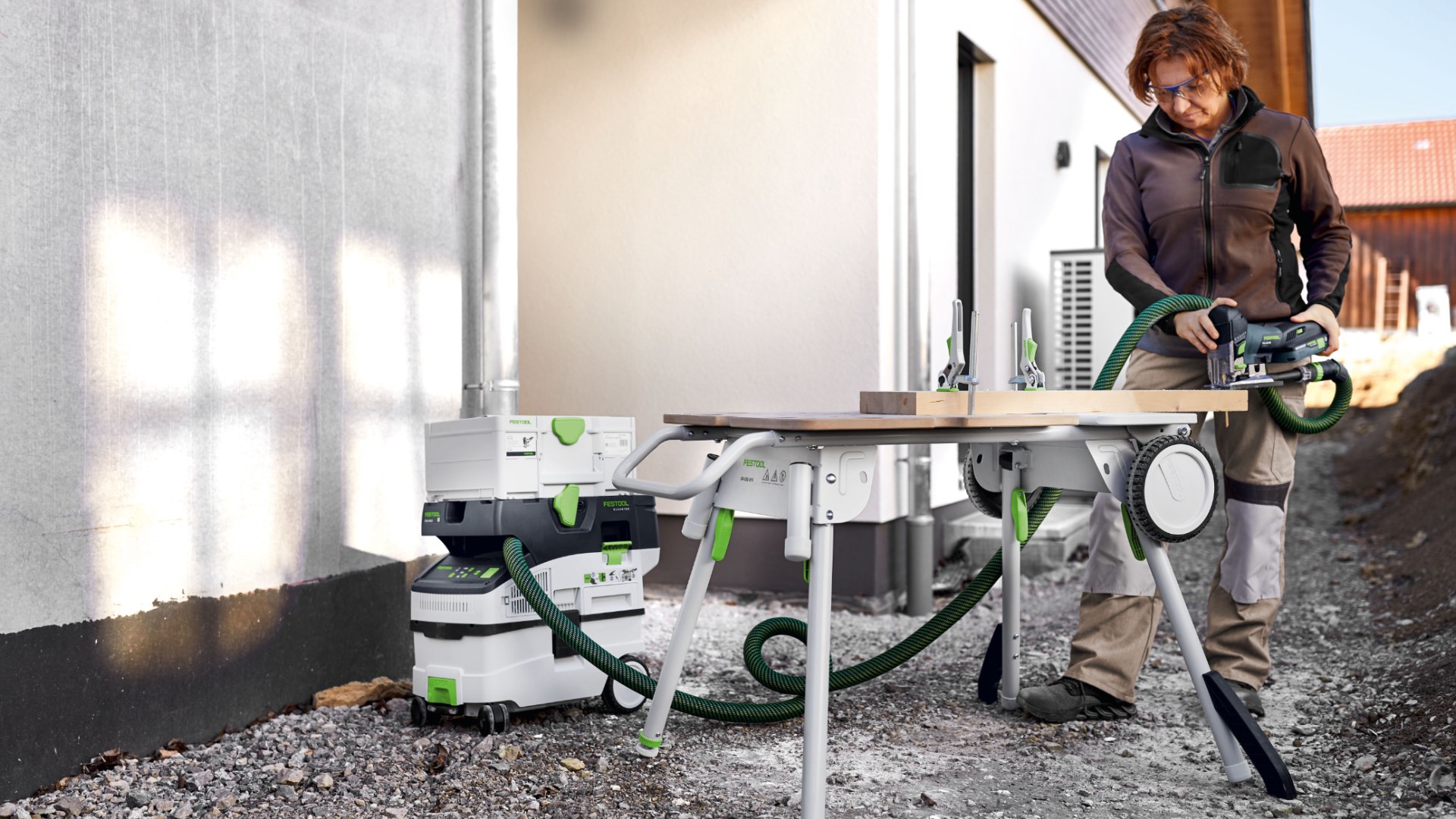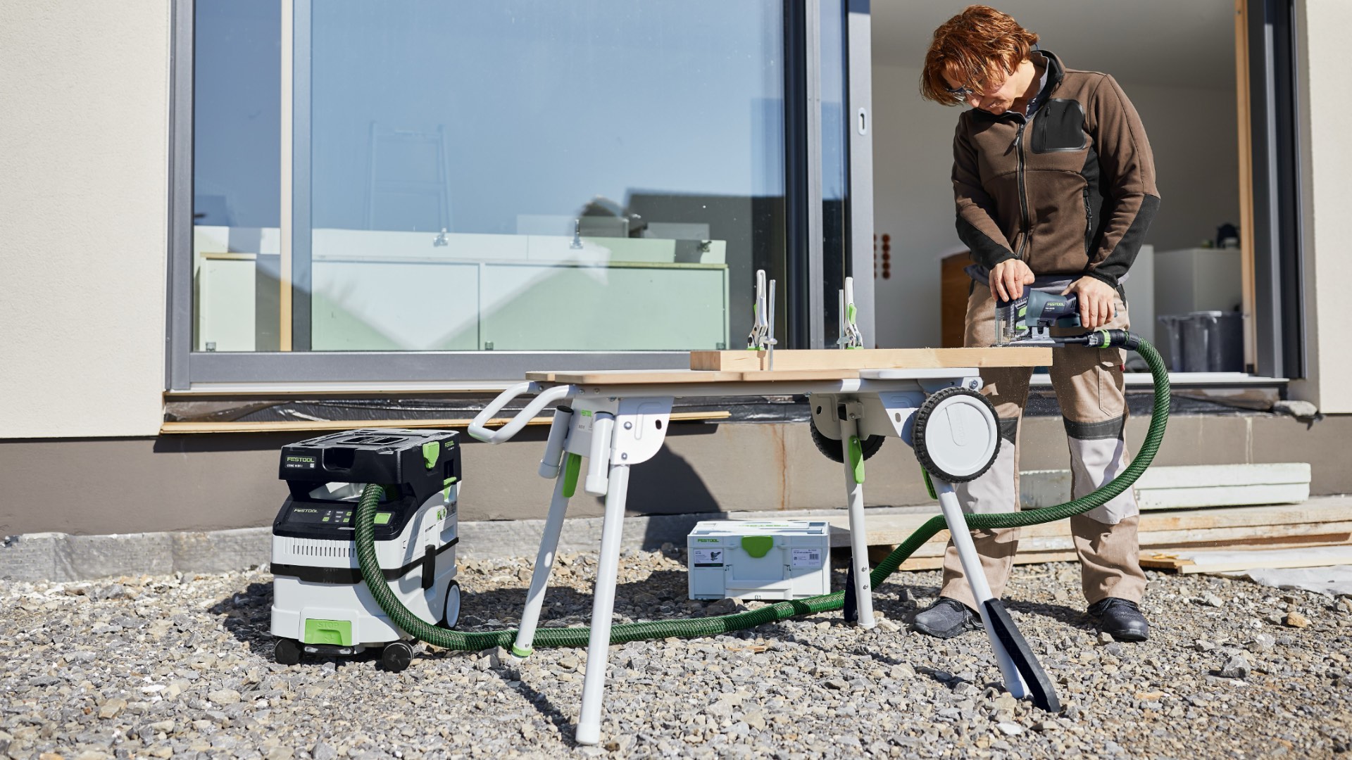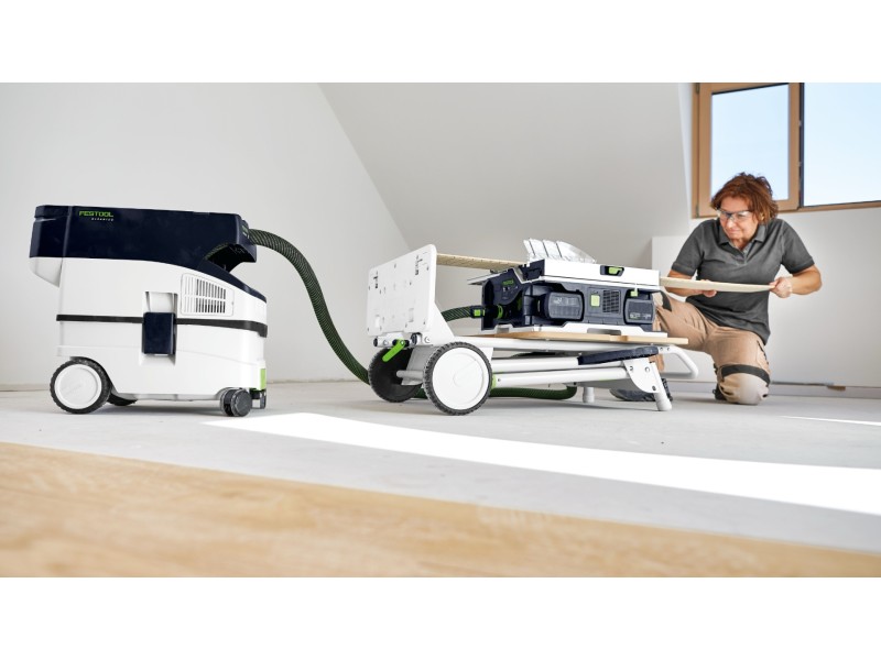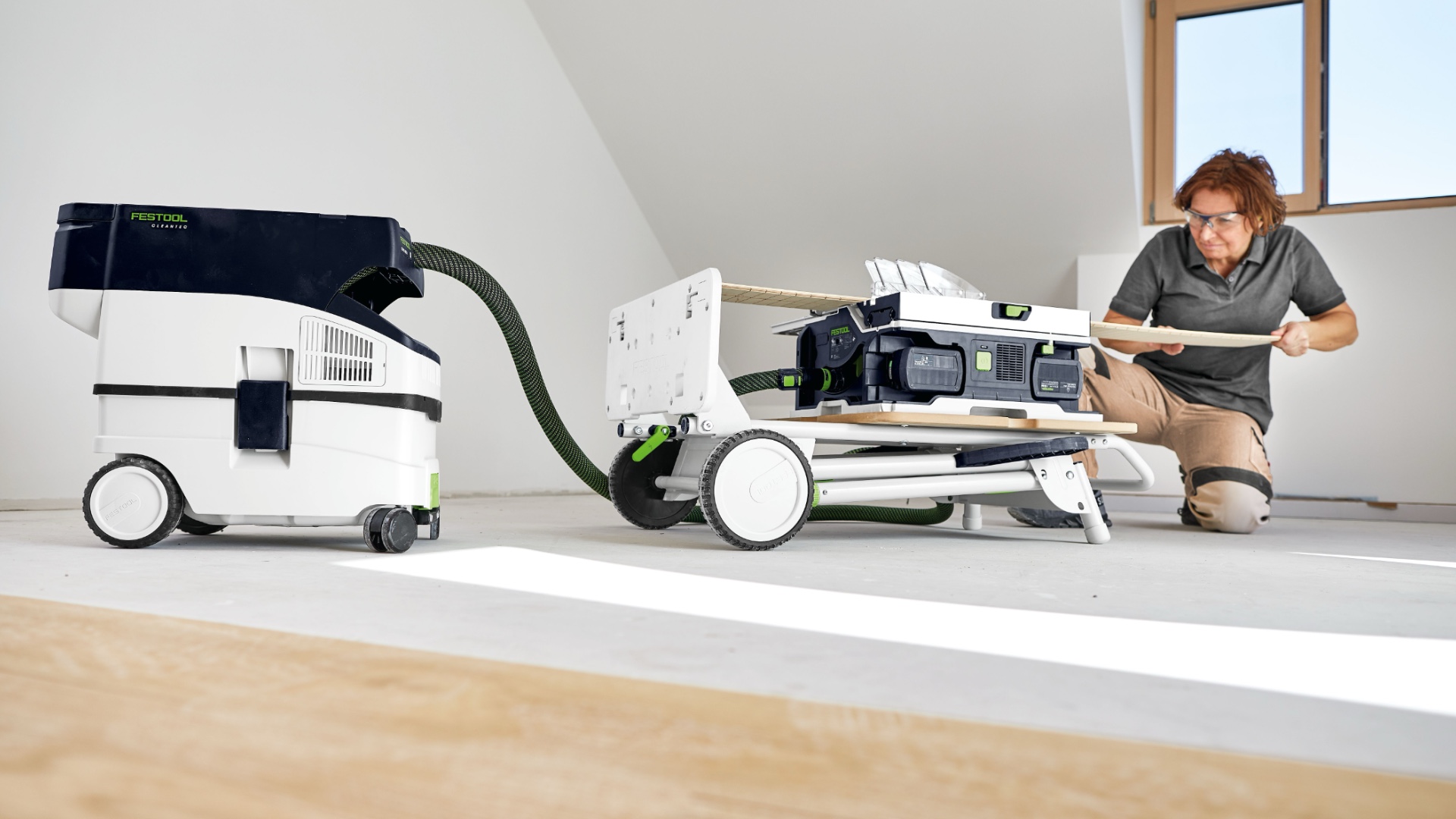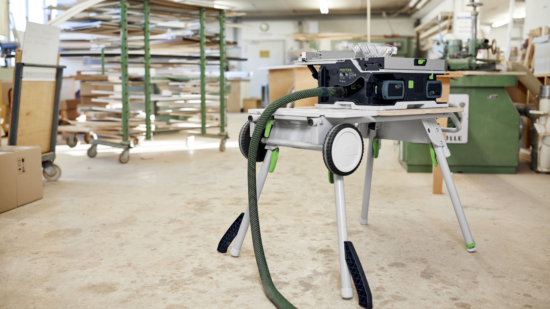 Просто транспортировать. Комфортно работать. Идеально в сочетании с аккумуляторной настольной циркулярной пилой CSC SYS 50.