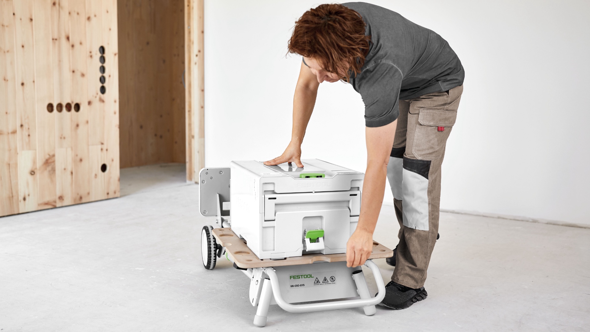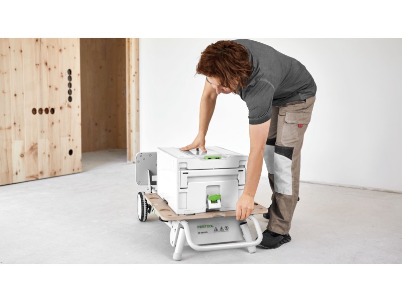 - В своей функции тележки подставка UG-CSC-SYS позволяет вам перевозить не только аккумуляторную настольную пилу CSC SYS 50, но и все ваши систейнеры без усилий к месту применения – это экономит время, количество ходок и силы. В сложенном виде она занимает совсем мало места в автомобиле: так что этот умный помощник всегда с вами на борту!