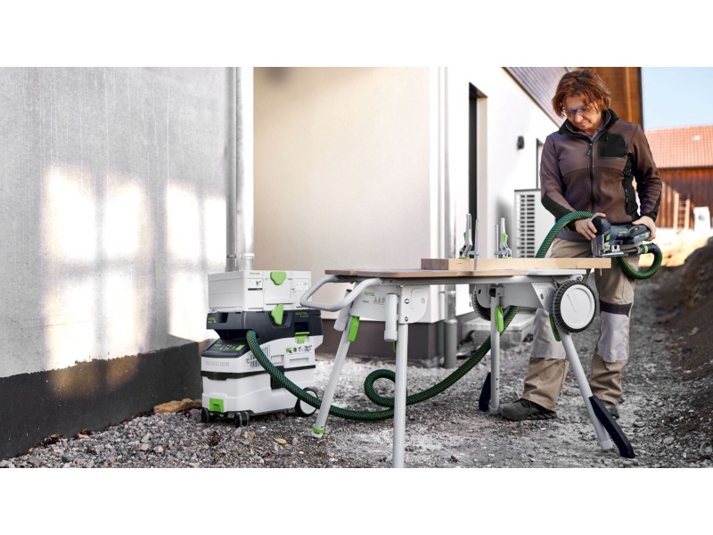 - Надёжная опора: типичная для Festool перфорированная рабочая плита позволяет надёжно зажимать заготовки с помощью струбцин и быстрозажимных струбцин