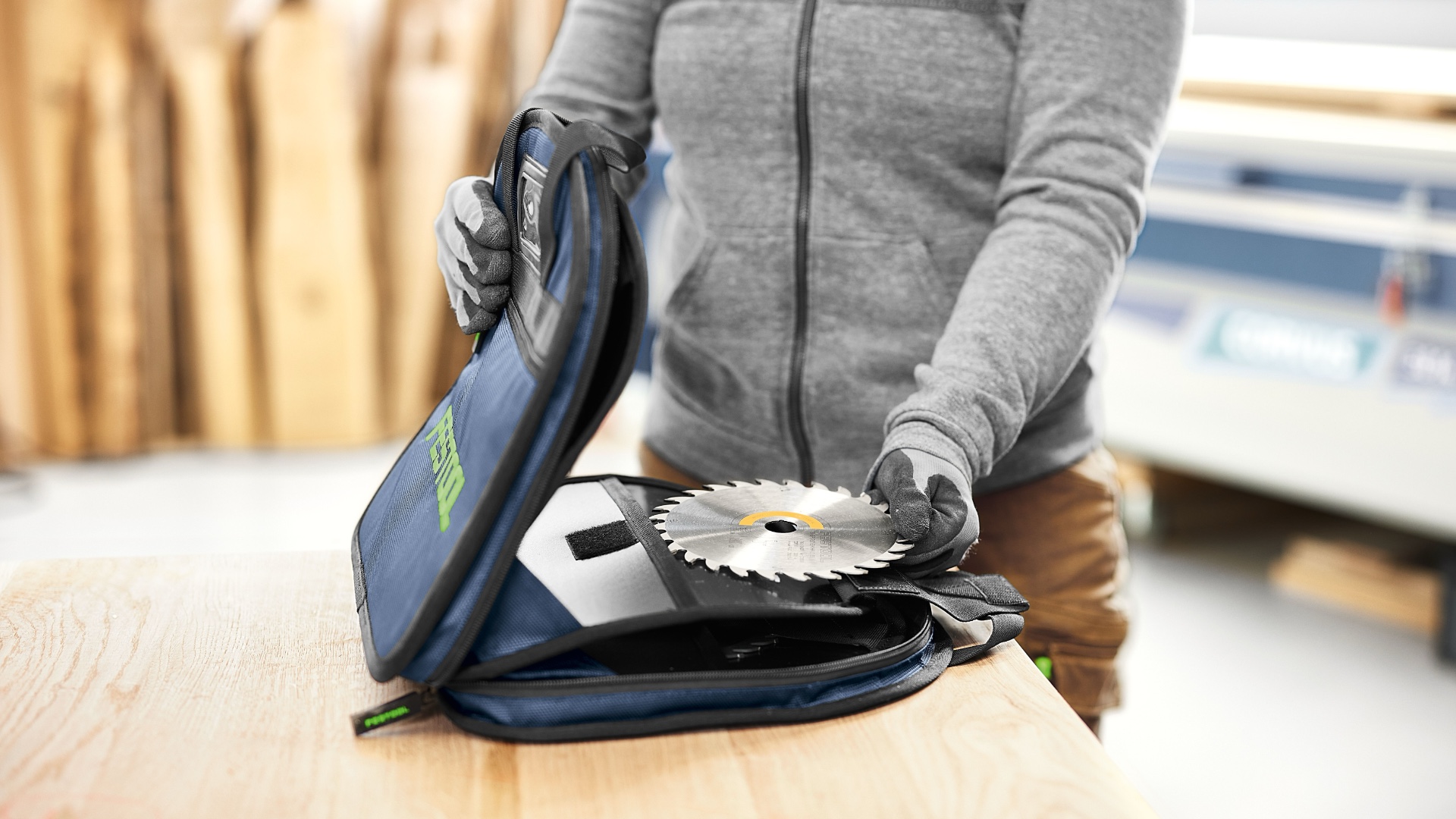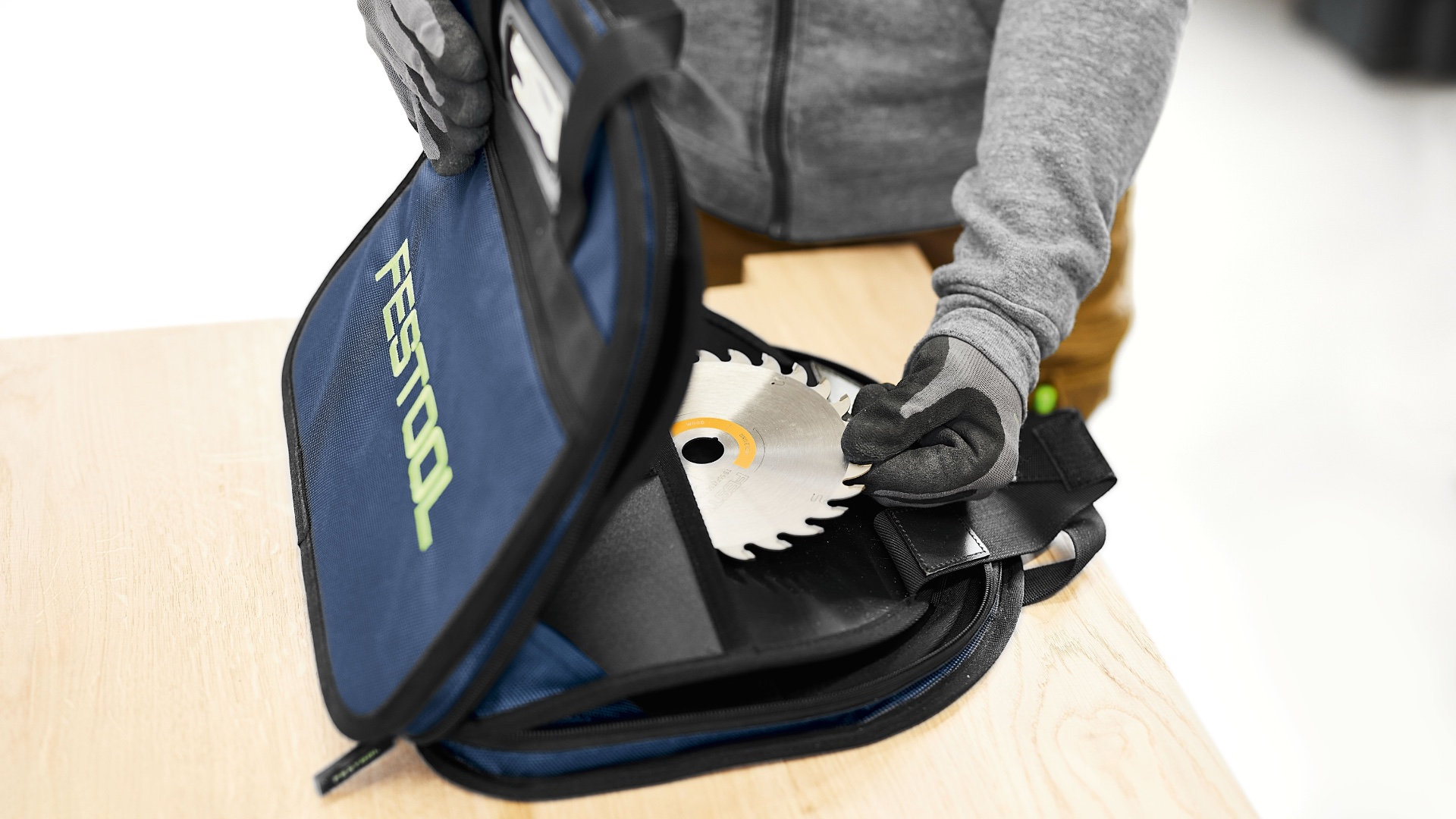 - Прочная сумка для пильных дисков.