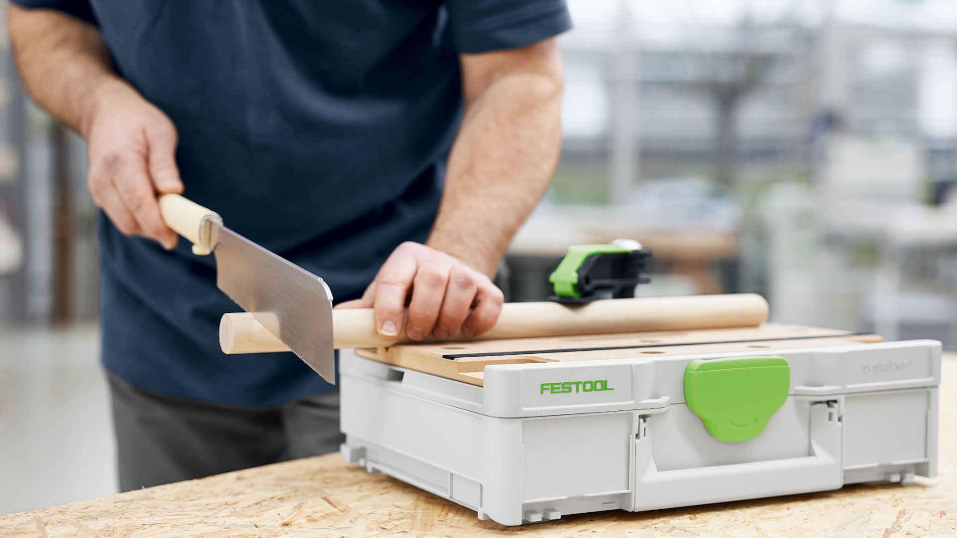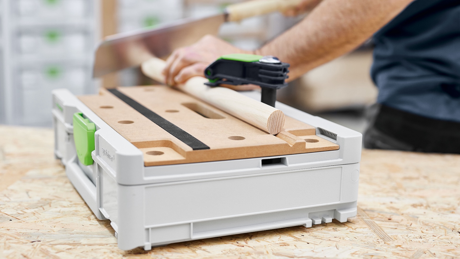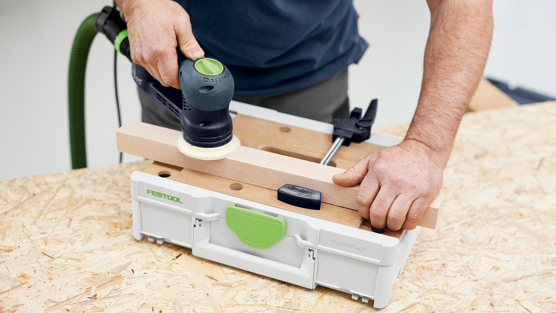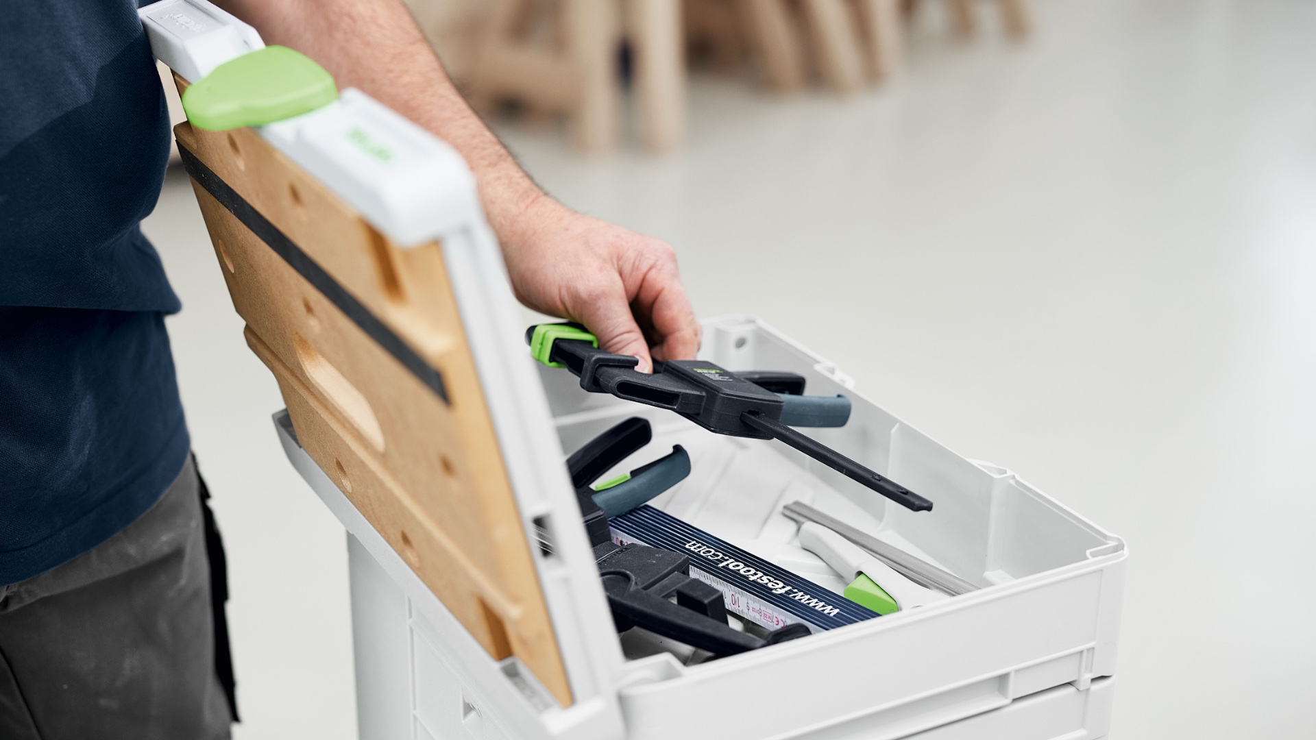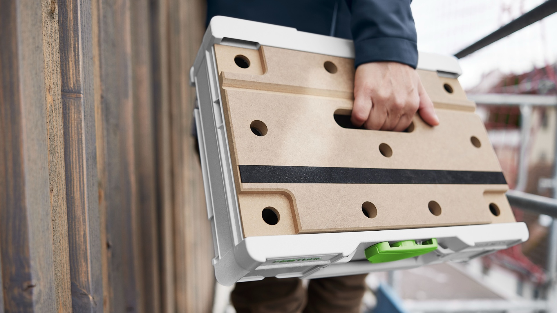 Твой мобильный рабочий стол «в пути»: со Systainer³ MFT ты везде готов к небольшим подгоночным работам. Пилить, сверлить или шлифовать — на MDF-плите с отверстиями в Systainer³ MFT всё делается просто и удобно. Струбцины и зажимы легко фиксируются в отверстиях плиты на крышке Systainer, поэтому можно закреплять заготовки самых разных форм — даже круглые прутки и трубы. Встроенная противоскользящая накладка из пористой резины (моосгумми) даёт дополнительный упор, если ты укладываешь листовые материалы или бруски. А аксессуары после работы просто убираются внутрь Systainer — всё хранится аккуратно и под рукой.