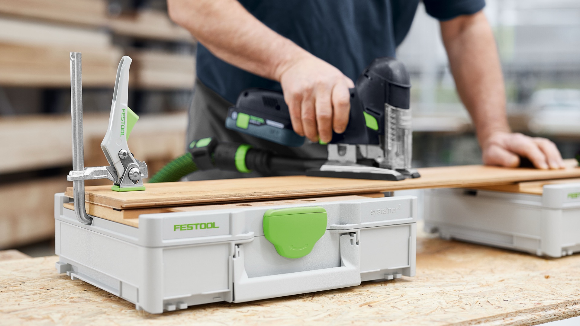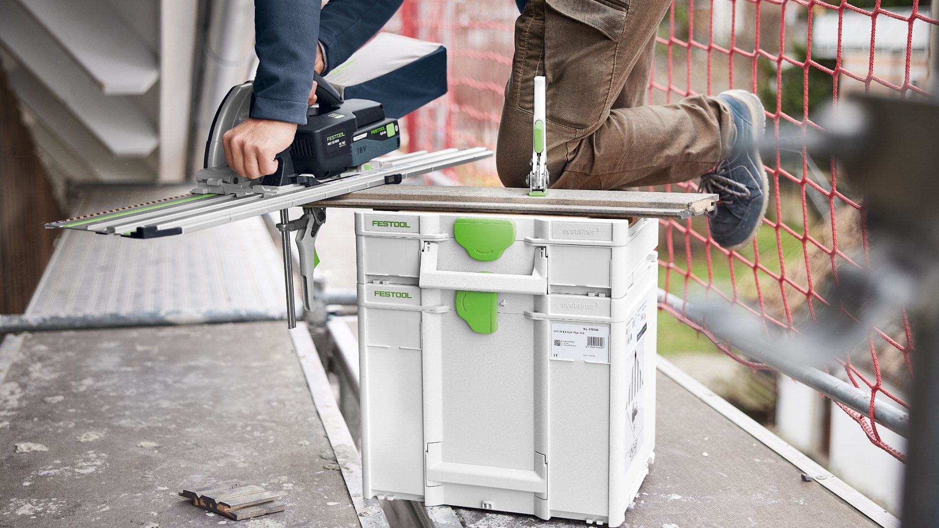 - Совместимо: входит в систему Festool Systainer — легко сцепляется и перевозится