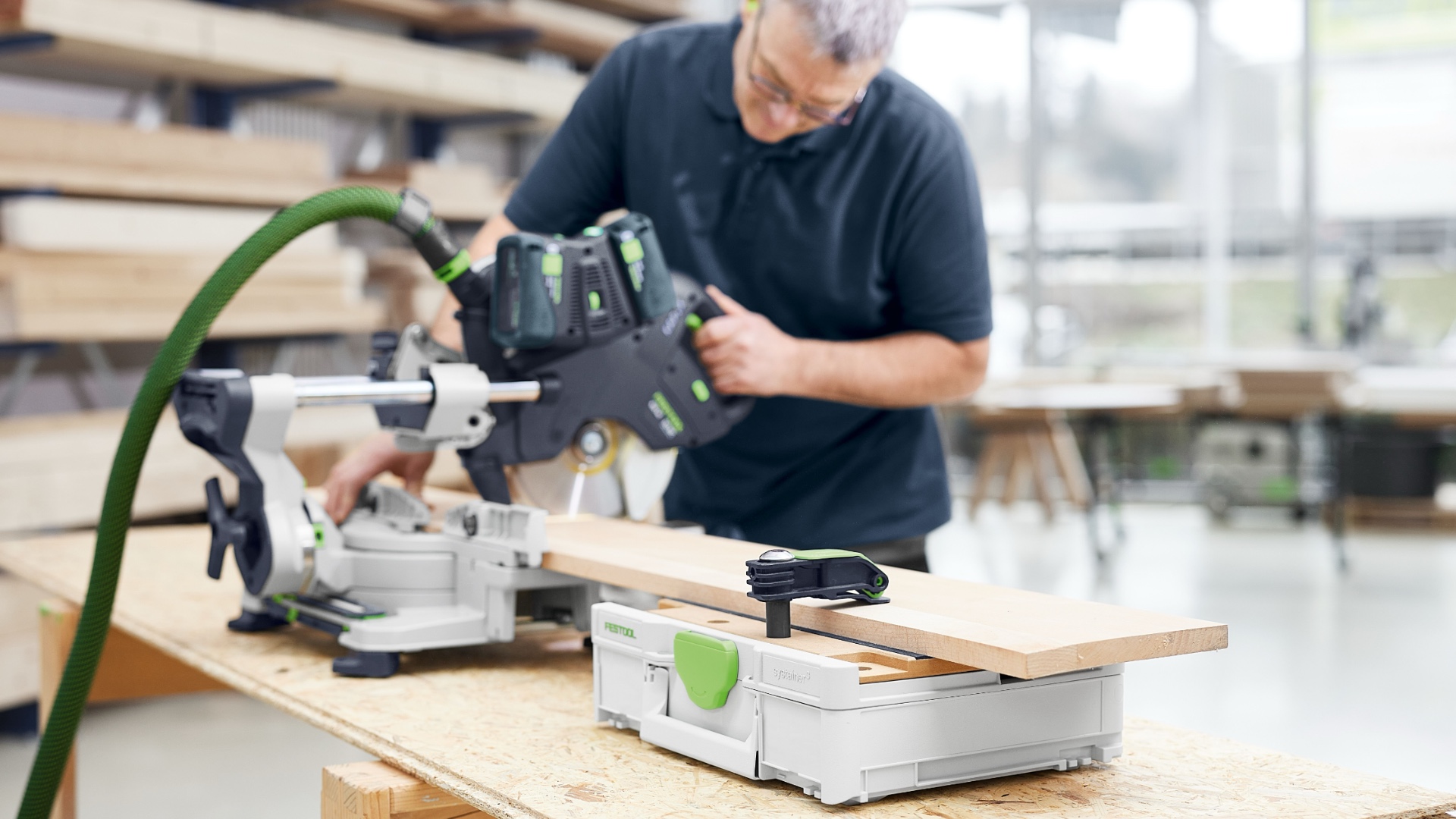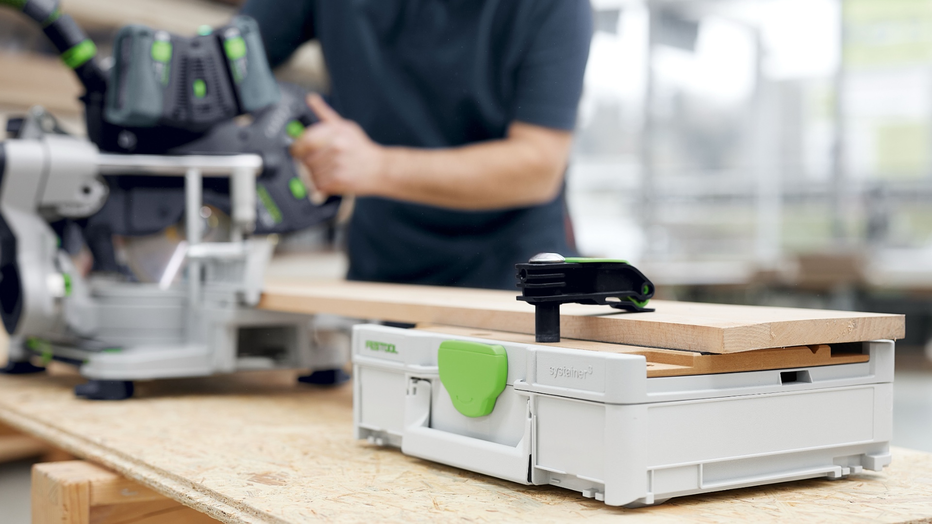 - высота Systainer соответствует высоте пильного стола KAPEX (KS 120 без опорных ножек; KS/KSC 60 с ножками) — удобно как опора при распиле длинных заготовок