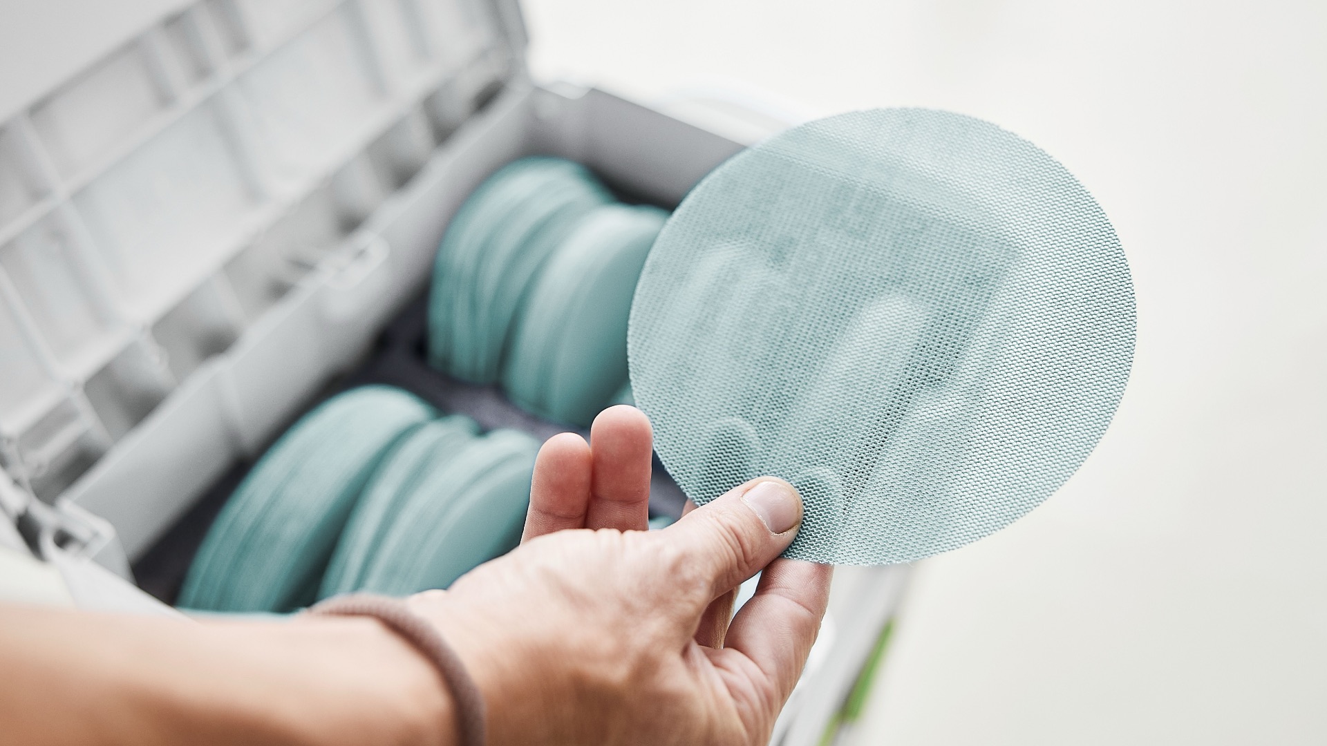 Аккуратный порядок для ваших сетчатых шлифматериалов. В комплекте — широкий выбор зернистостей и два Protection Pad.