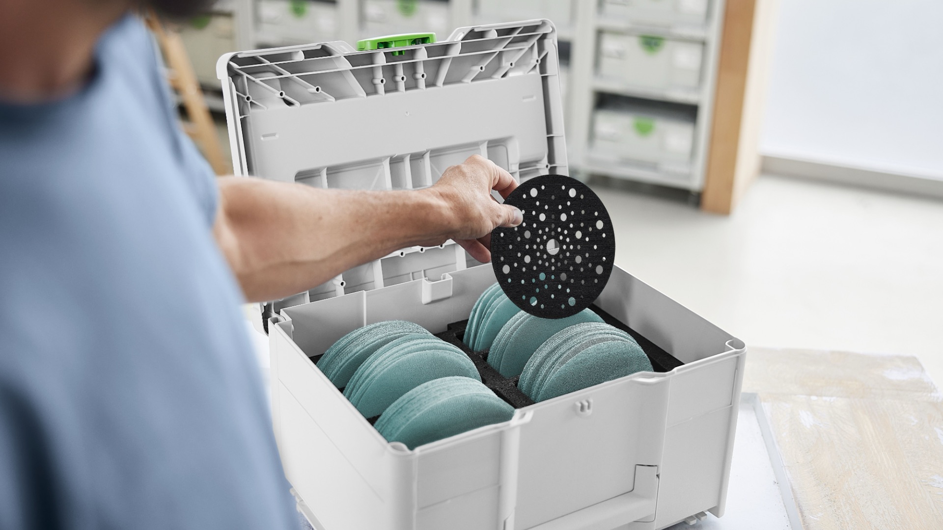 Systainer надёжно защищает шлифматериал от неблагоприятных факторов — пыли, брызг воды и заломов. Он также упрощает переноску и позволяет сцеплять его с другими Systainer — это выглядит профессионально в глазах клиентов. От мастерской до стройплощадки: шлифовальный Systainer добавляет гибкости в повседневной работе. Благодаря проверенному элементу T-LOC закрывать, открывать и стыковать Systainer максимально просто. Systainer совместимы между собой и стыкуются со всеми предыдущими поколениями, а также со многими машинами и аксессуарами.