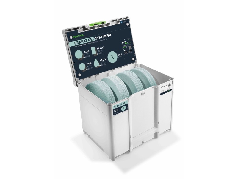 Шлифовальный Systainer — идеальное дополнение к вашему длинношеечному шлифовальному инструменту. Благодаря широкой линейке зернистостей он обеспечивает отличный старт в мире шлифматериалов Granat. 25 шлифкругов Granat зернистостью от P80 до P240 всегда под рукой. Внутри предусмотрена упорядоченная структура по зерну: у каждого отделения своё место, поэтому нужная зернистость находится за секунды. Простое пополнение позволяет постоянно иметь доступ к необходимой зернистости.
