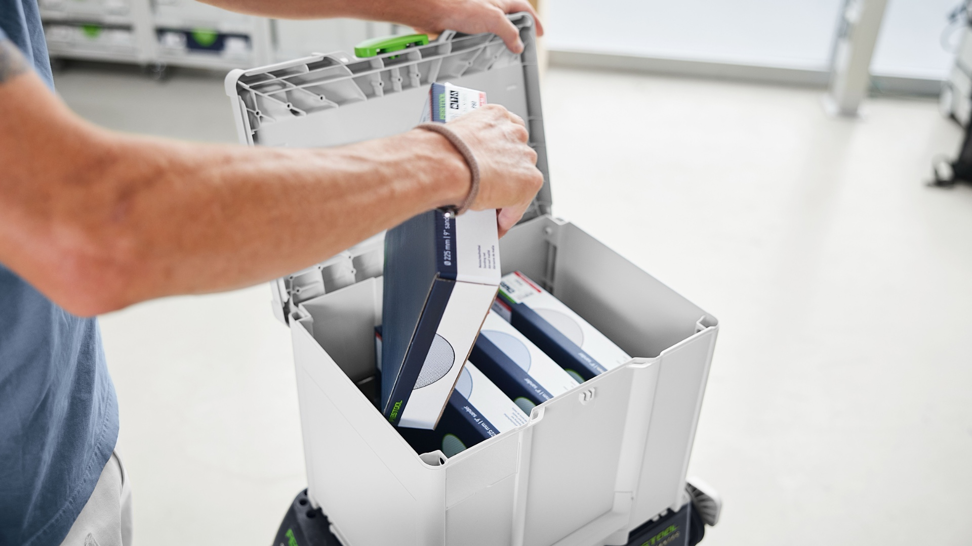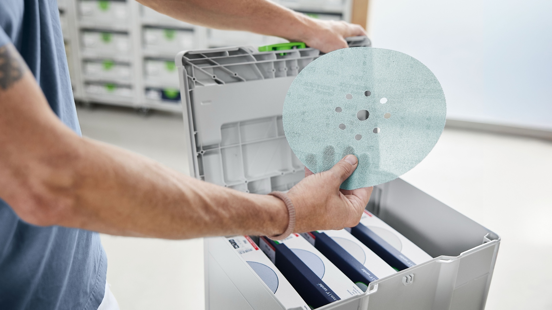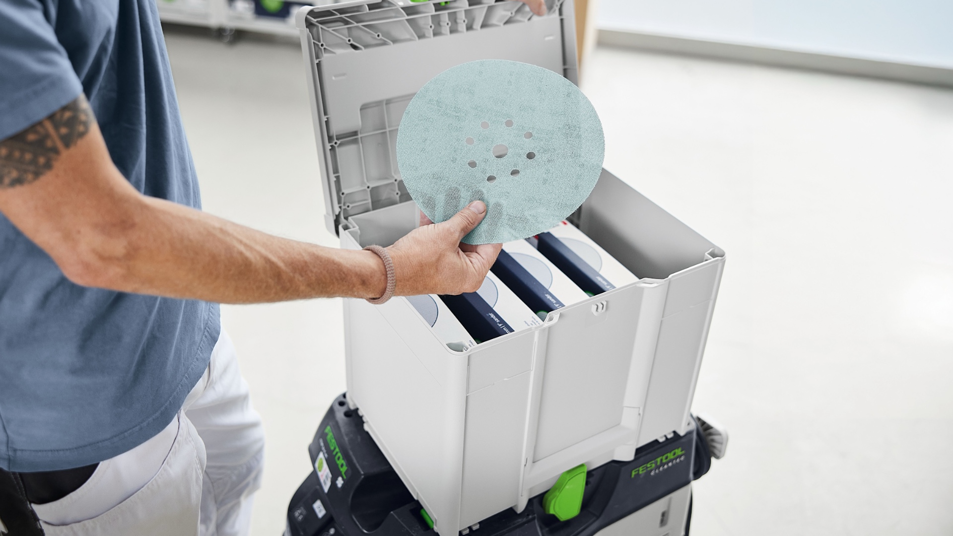 Systainer надёжно защищает шлифматериал от неблагоприятных факторов — пыли, брызг воды и заломов. Он также облегчает транспортировку и позволяет сцеплять его с другими Systainer — это оставляет профессиональное впечатление у ваших клиентов. От мастерской до стройплощадки: шлифовальный Systainer добавляет гибкости в ежедневной работе. Благодаря проверенному элементу T-LOC закрывать, открывать и стыковать Systainer максимально просто. Systainer совместимы между собой и стыкуются со всеми предыдущими поколениями, а также со многими машинами и аксессуарами.