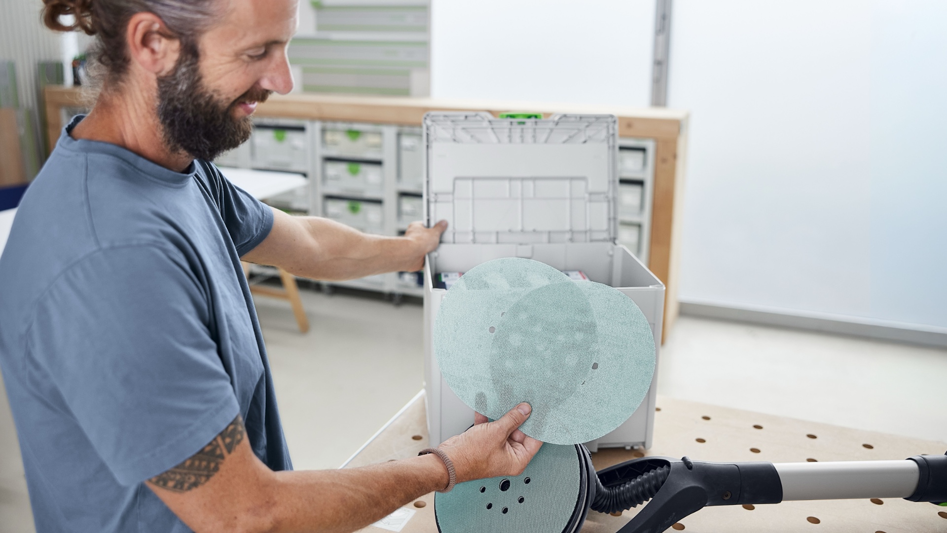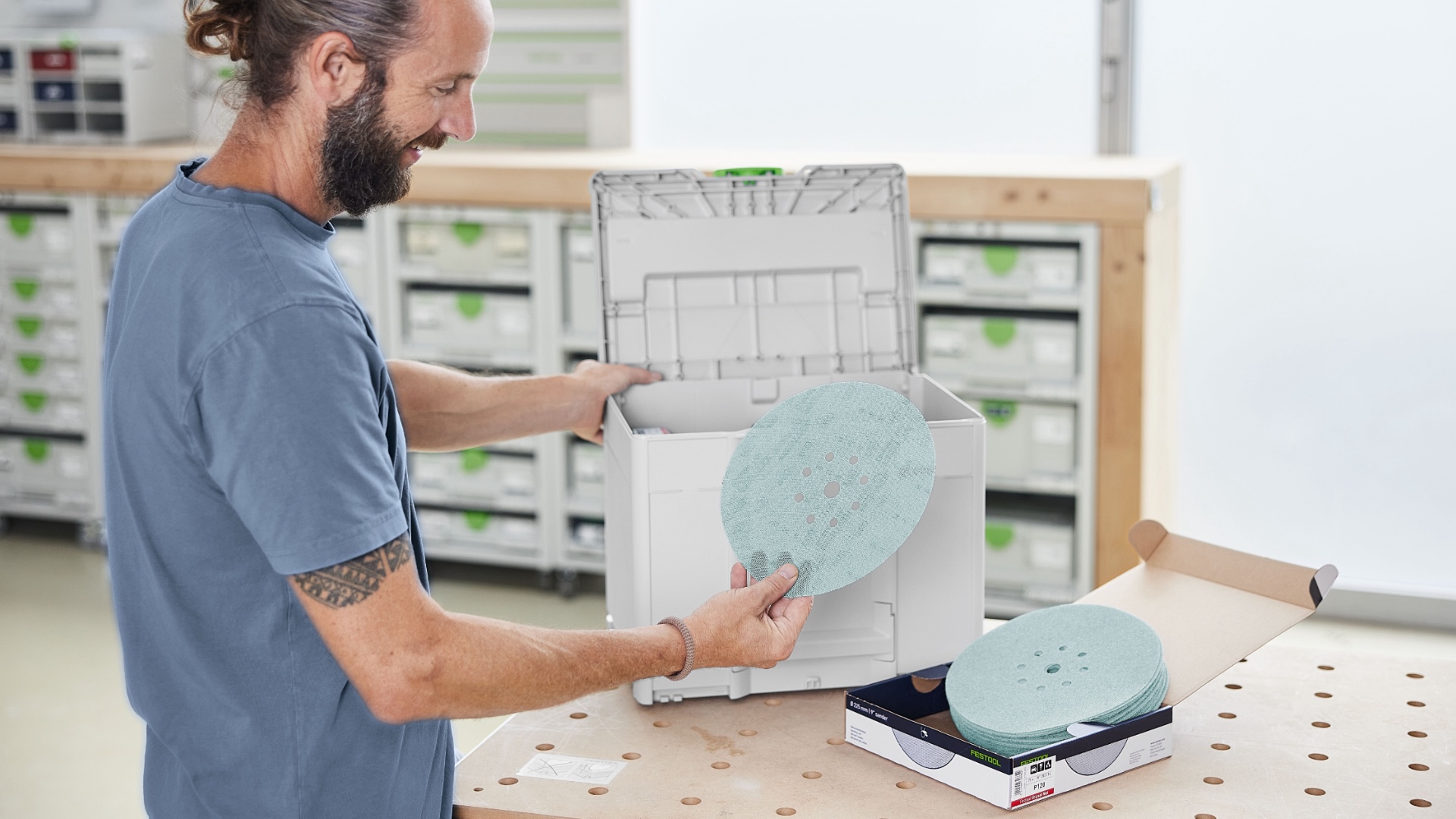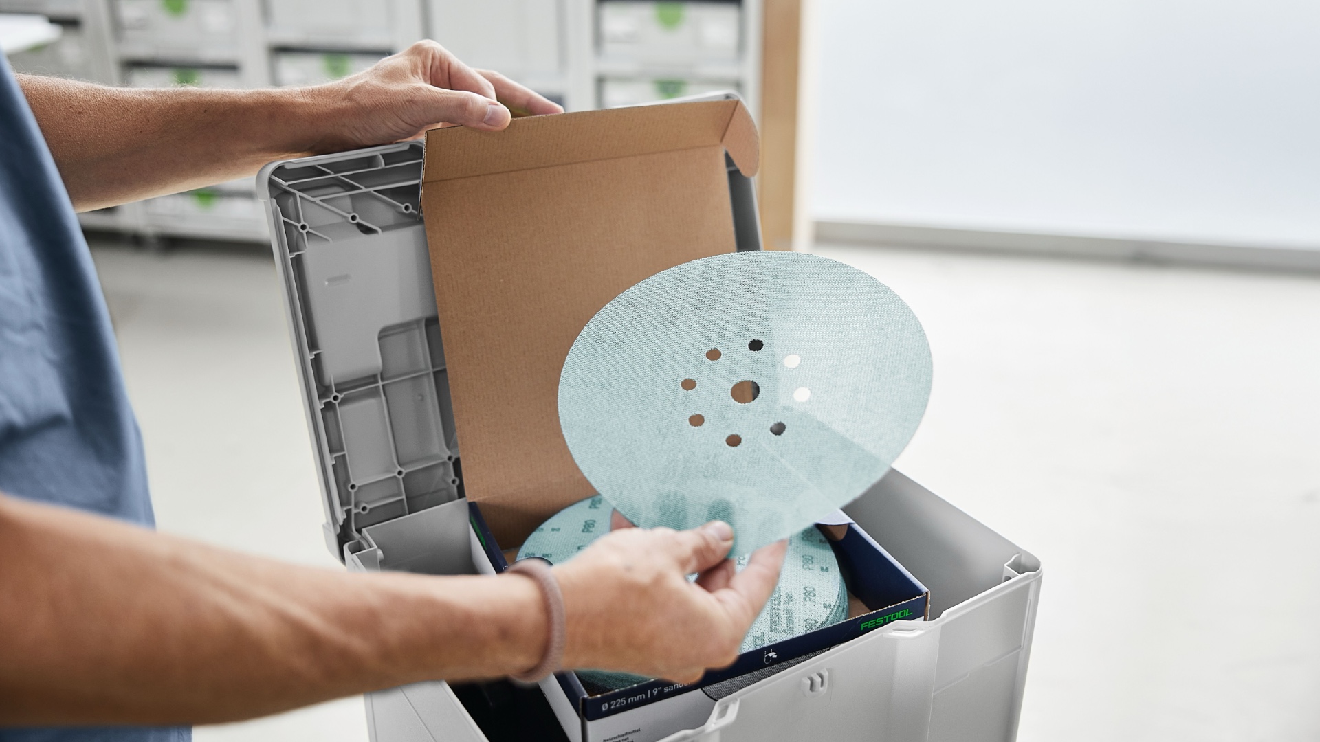 Systainer надёжно защищает шлифматериал от неблагоприятных факторов — пыли, брызг воды и заломов. Он также облегчает транспортировку и позволяет сцеплять его с другими Systainer — это оставляет профессиональное впечатление у ваших клиентов. От мастерской до стройплощадки: шлифовальный Systainer добавляет гибкости в ежедневной работе. Благодаря проверенному элементу T-LOC закрывать, открывать и стыковать Systainer максимально просто. Systainer совместимы между собой и стыкуются со всеми предыдущими поколениями, а также со многими машинами и аксессуарами.