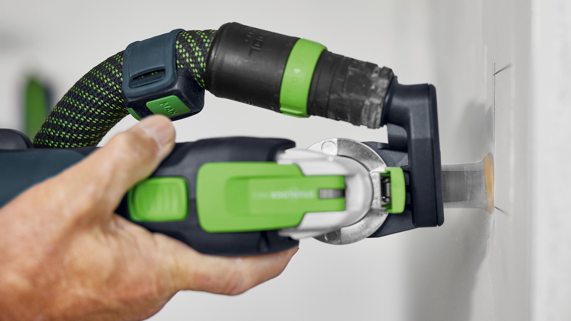 - Выпиливание проёмов и подгонка любых элементов: не только для панелей и дверных коробок, но и для абразивных материалов, таких как фасадные плиты или кирпич